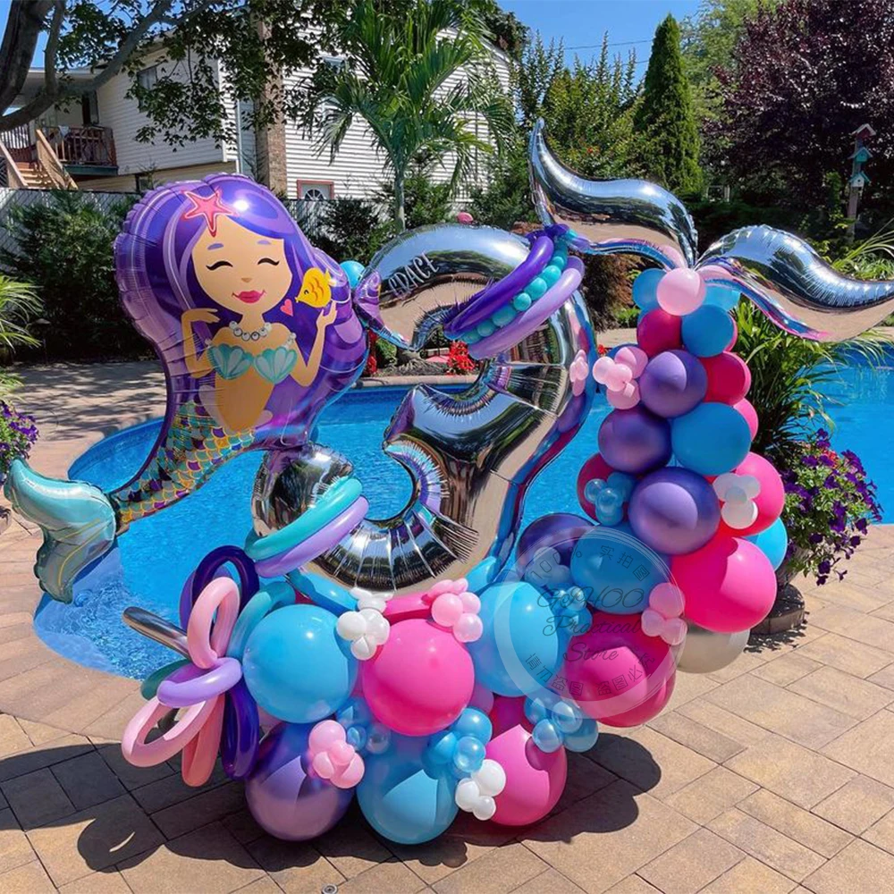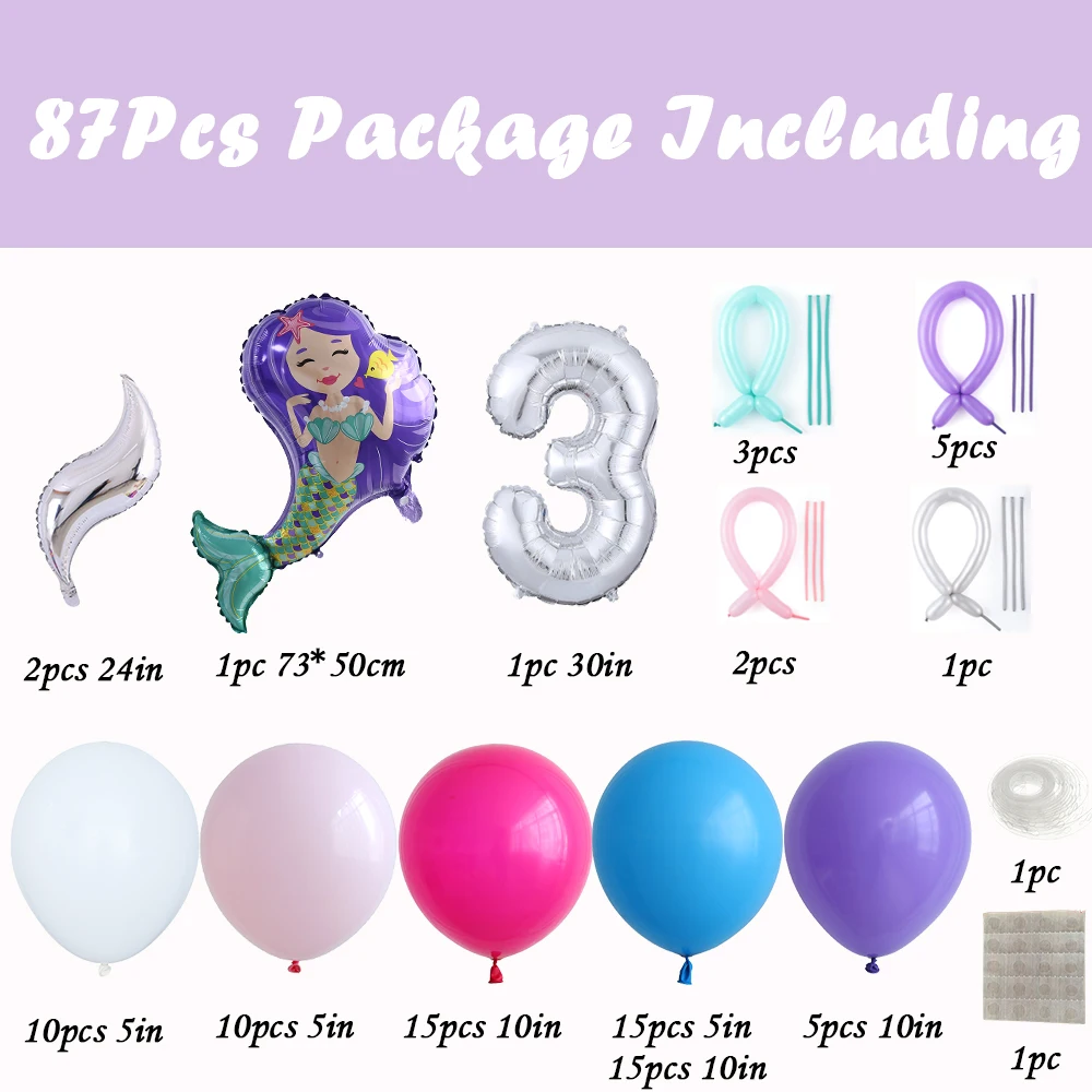 87 шт., серебряные воздушные шары в виде хвоста Русалочки