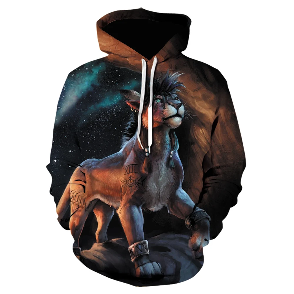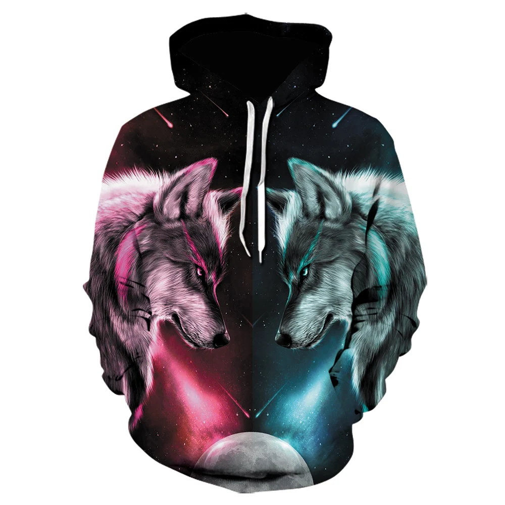 Толстовка Мужскаяженская оверсайз с капюшоном и 3D-принтом волка