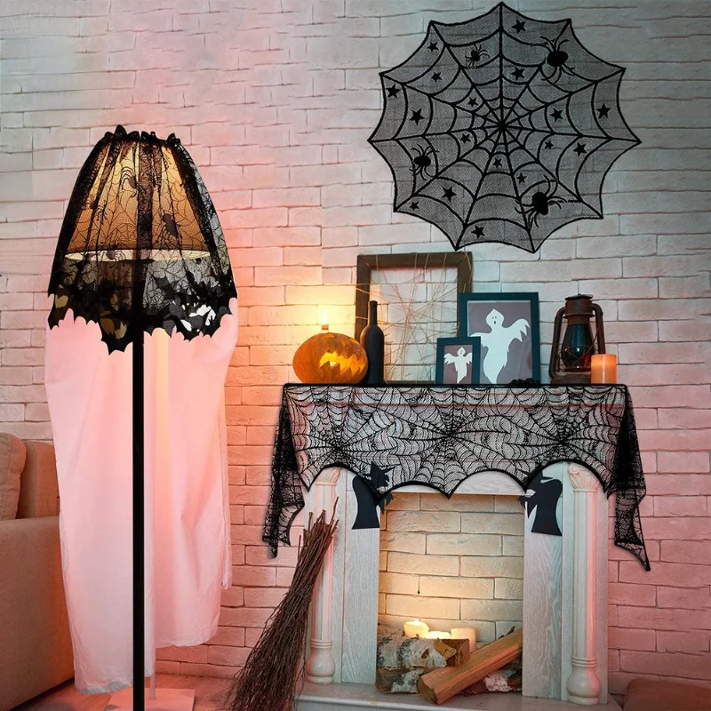 Украшение на Хэллоуин, семейные скатерти с абажуром, привидение, фестиваль вечерние вечеринка, Настольная дорожка, однотонная Кружевная Сетка из полиэстера