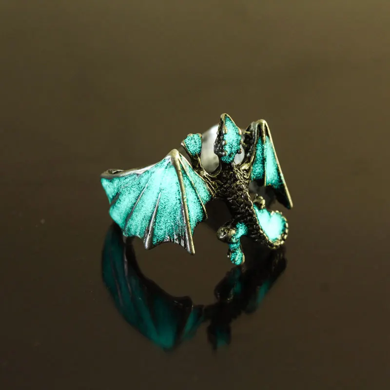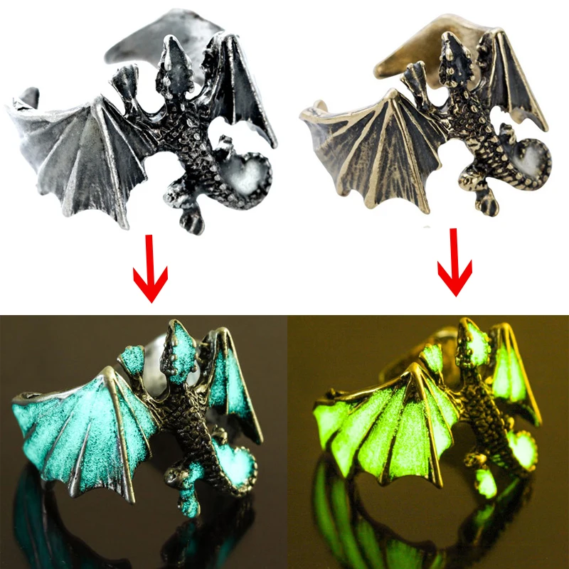 2021 модные светящиеся кольца с драконом, светящиеся в темноте крылья птерозавра, кольца для пальцев старинное серебро, регулируемые мужские Креативные украшения