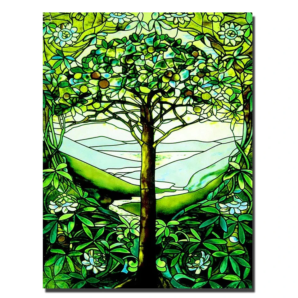 Полностью квадратная круглая Алмазная картина зеленое дерево жизни Алмазная вышивка 5D Стразы Алмазная мозаика украшение с инкрустированным узором