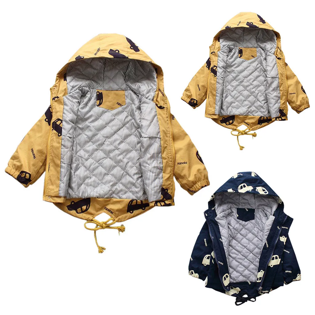 Детское пальто, зимняя одежда для маленьких мальчиков, теплая плотная куртка с капюшоном и мультяшным принтом для маленьких мальчиков и девочек, верхняя одежда, детская одежда