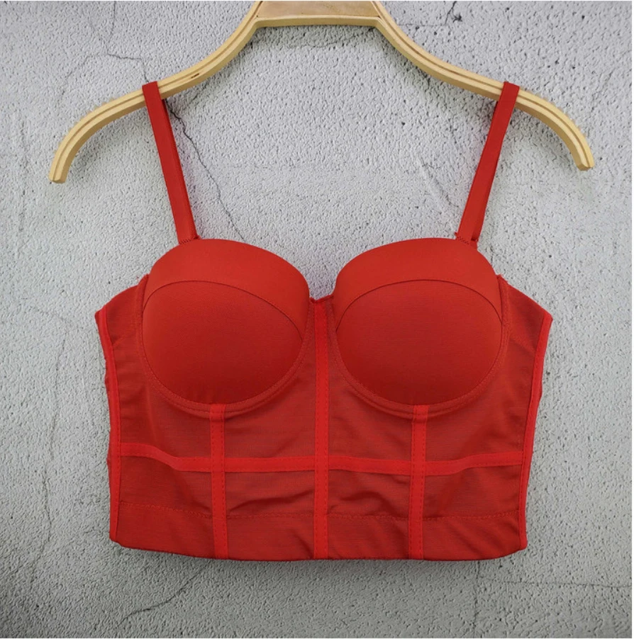 Cupnaya женский однотонный кроп-топ из спандекса, верх для женщин, сексуальная сетка внутри, Бралетт, однотонный черный, белый, красный, мятный
