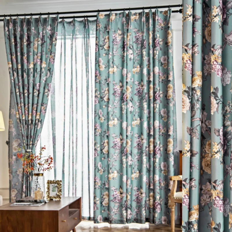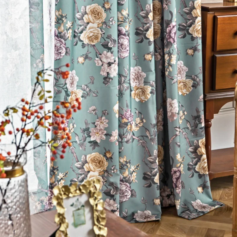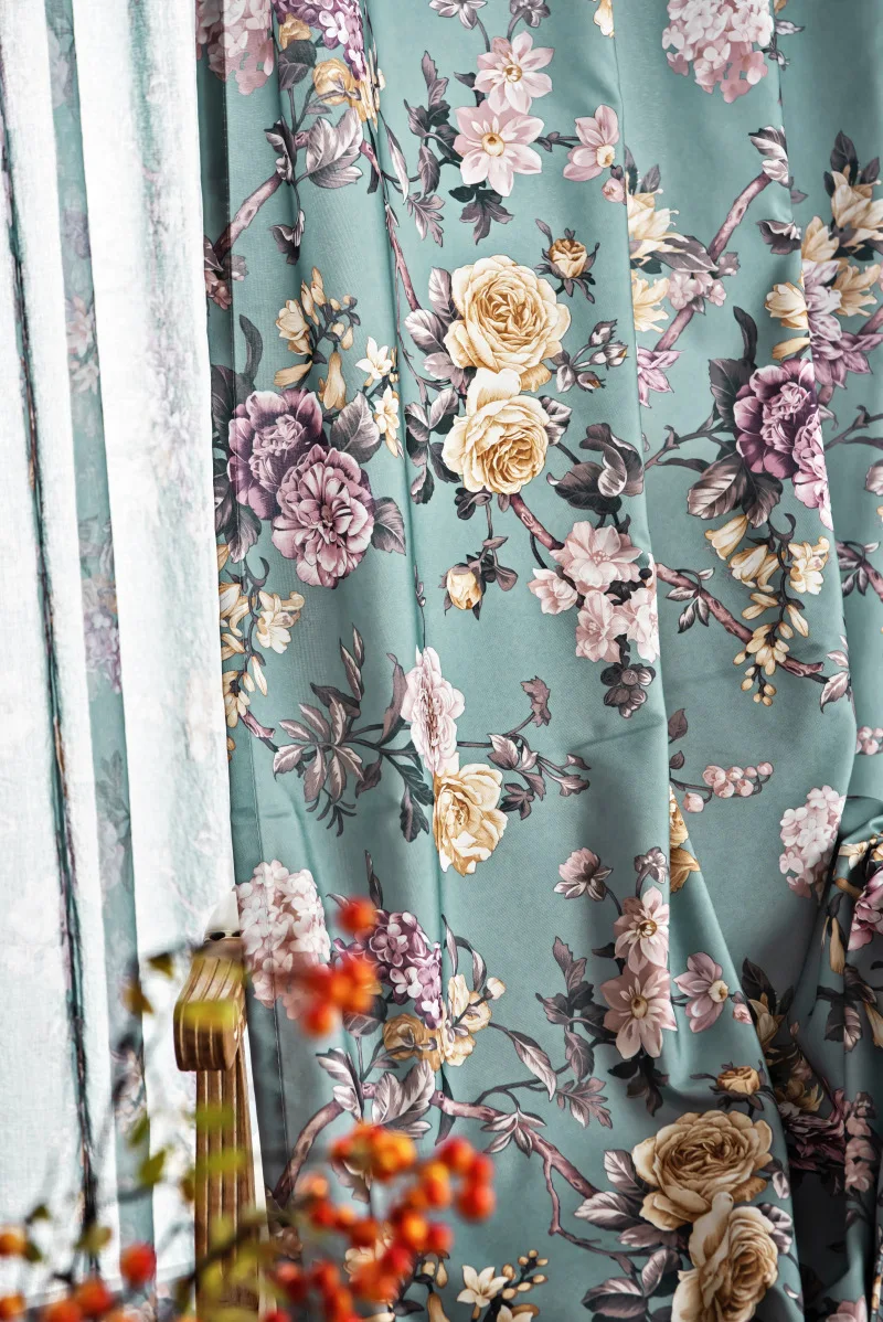 Плотные шторы в американском сельском стиле с цветочным принтом, дл...