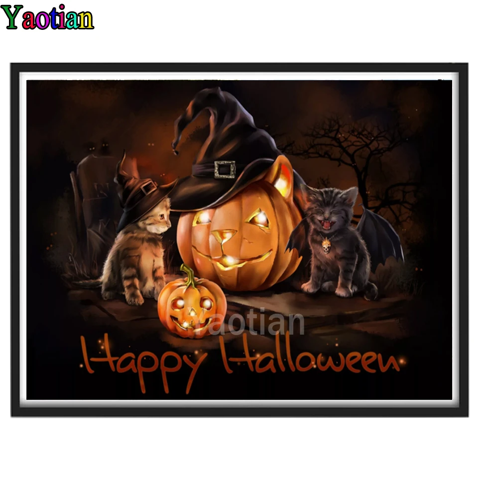 Алмазная вышивка Счастливого Хэллоуина Diy алмазная живопись наборы крестиков кошки и тыквы мозаика аксессуары для взрослых ремесла Декор