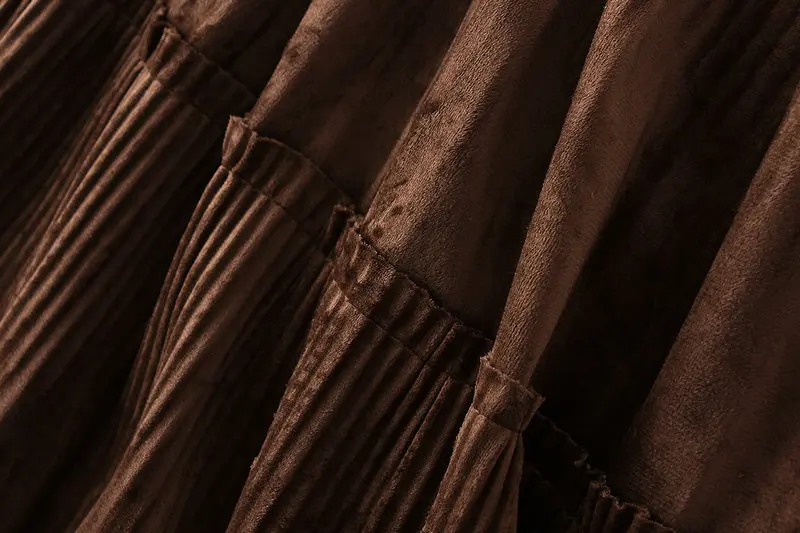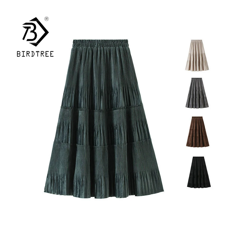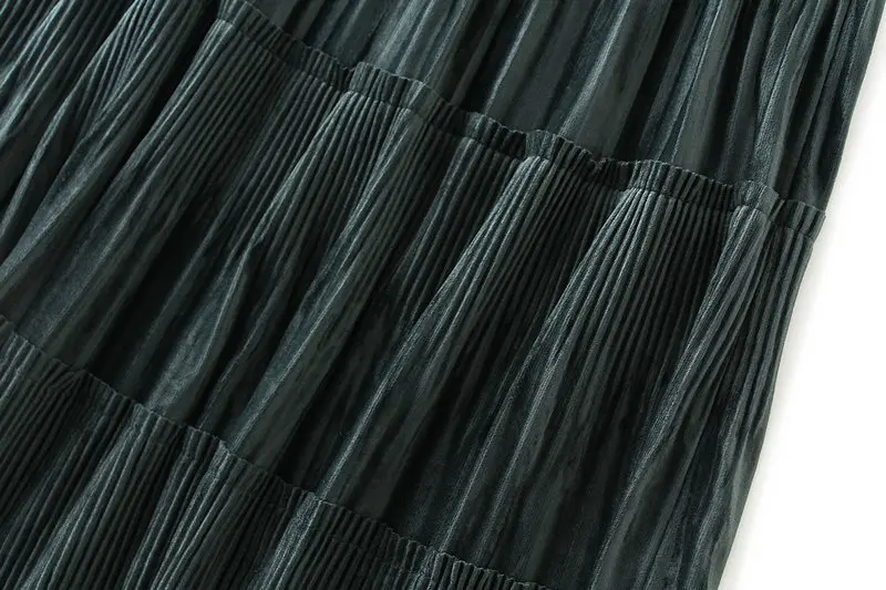 Однотонная женская винтажная длинная бархатная плиссированная юбка, Женская осенне-зимняя Элегантная модная юбка трапециевидной формы с высокой талией, B8201X
