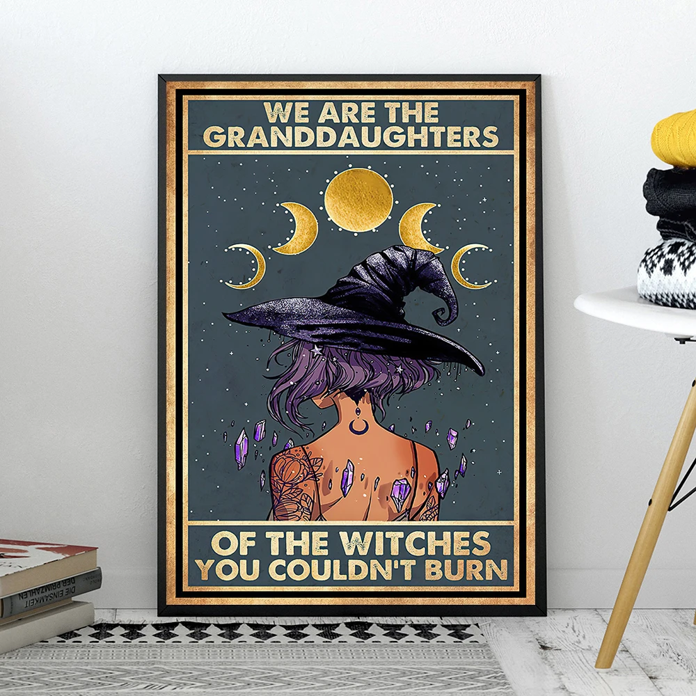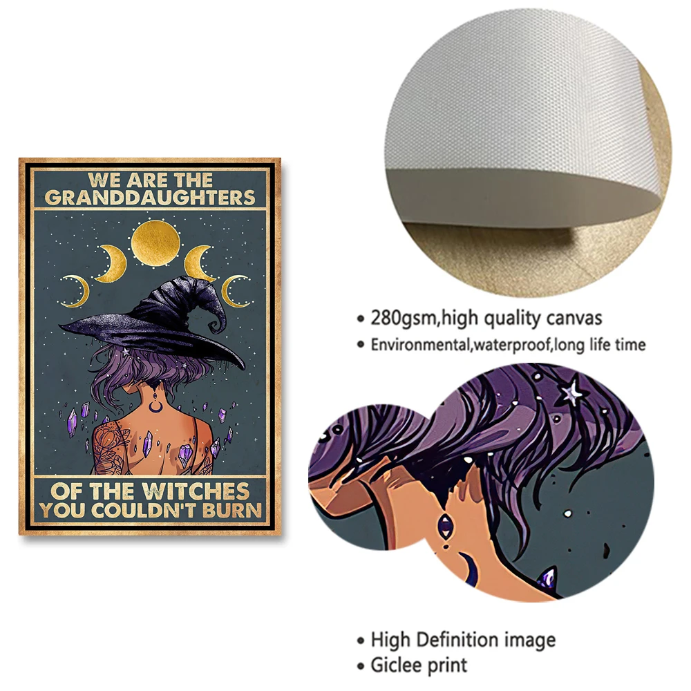 Плакат внучки ведьмы волшебная девушка на холсте картина Хэллоуин Ведьма ретро Настенная картина домашний декор
