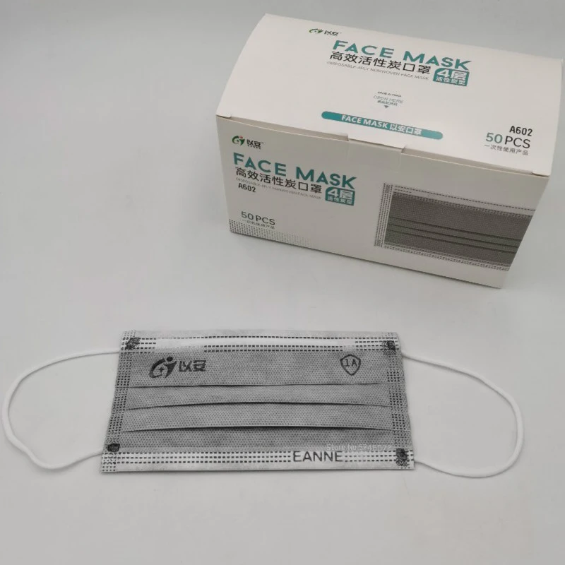 Маски одноразовые четырехслойные с активированным углем, 10-500 шт.