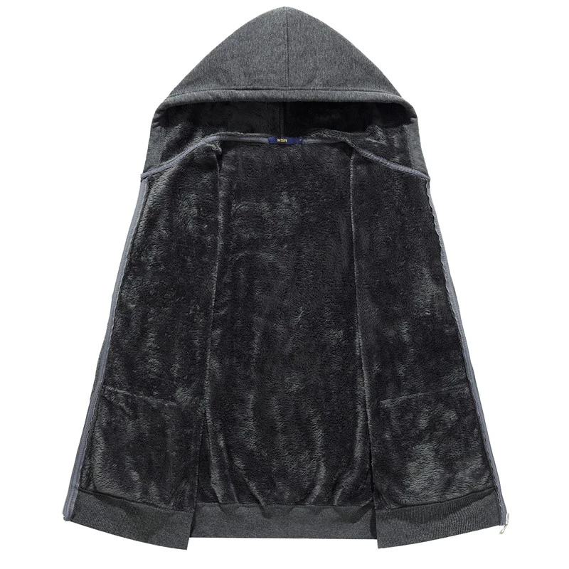 Кофта Мужская размера плюс на молнии с капюшоном, Толстая теплая то...
