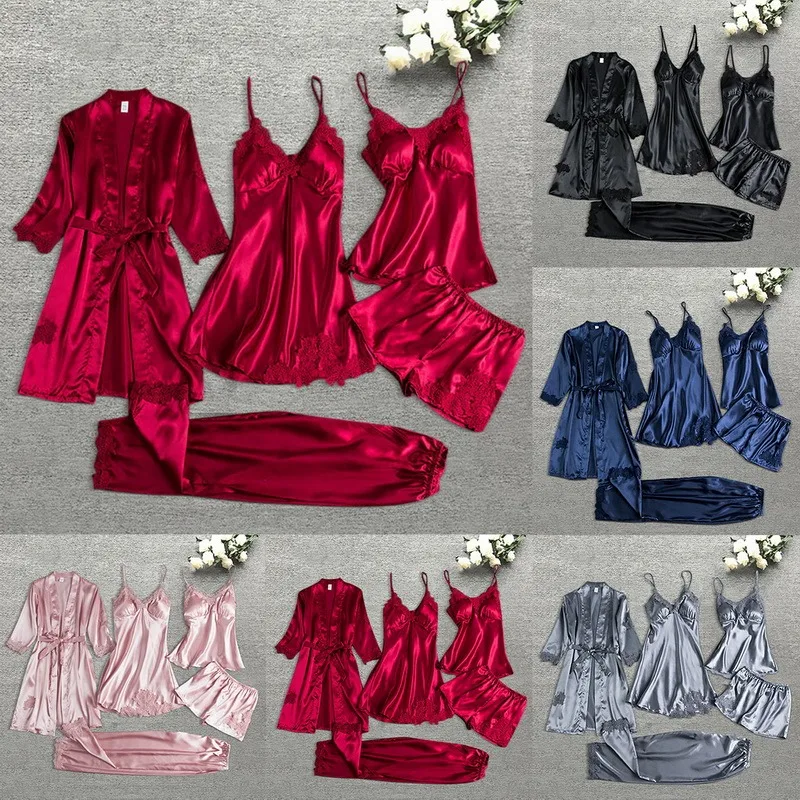 4-5 шт. шелковый халат, костюм для сна, женский кружевной Атласный ...