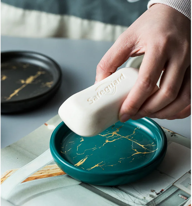 Керамическая мыльница в скандинавском стиле, мраморная, золотая, Креативные аксессуары, круглая керамическая мыльница, домашнее украшение ванной комнаты