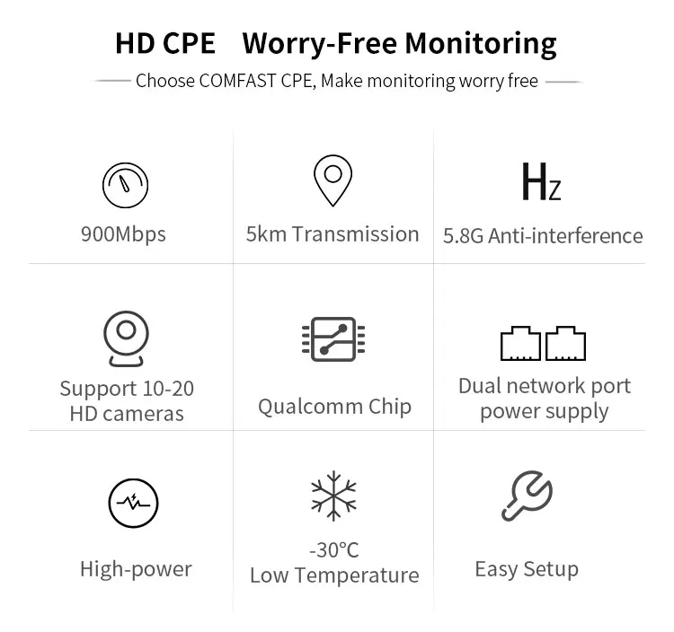 Беспроводная уличная CPE CF-E313AC специально разработана для обеспечения экономически эффективного решения для использования на открытом воздухе в беспроводных сетях.