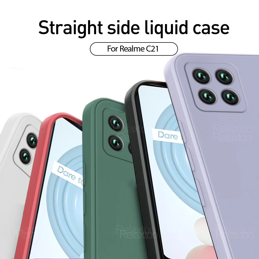 Роскошный оригинальный квадратный жидкий силиконовый чехол для OPPO Realme C21, противоударный мягкий чехол для телефона, чехол для Realmy C 21 21C 6,5 дюйма