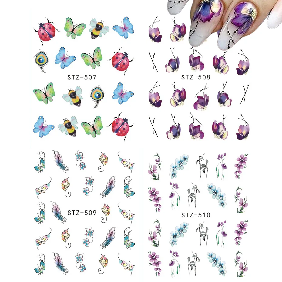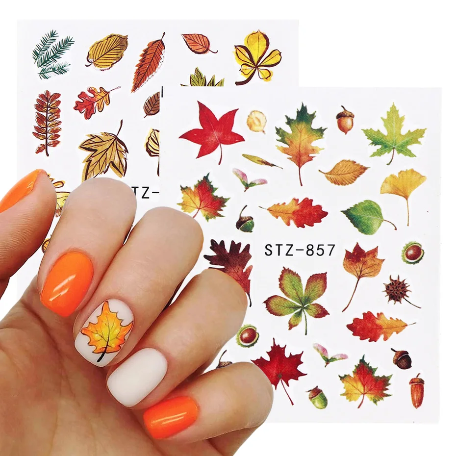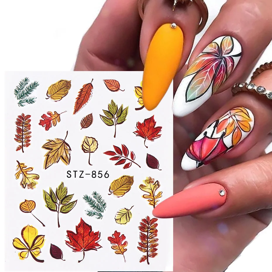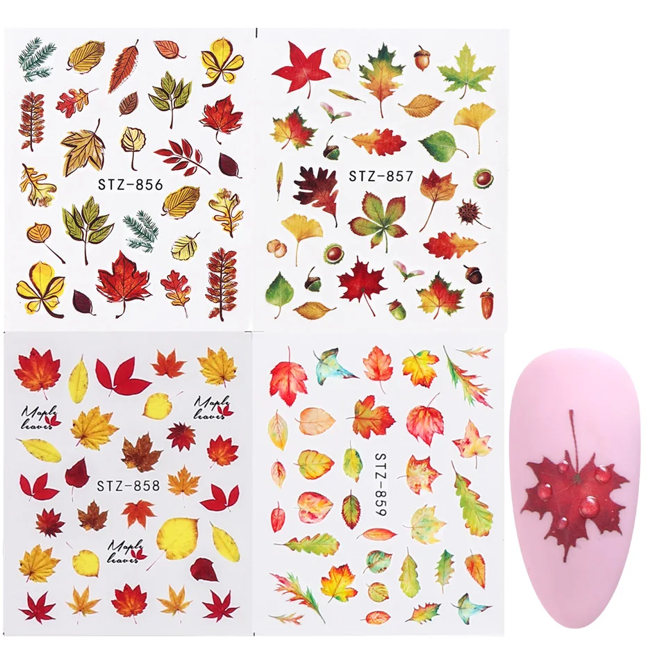 4 шт. наклейки с осенними листьями наклейки для ногтей золотые листья кленовые цветы для дизайна ногтей Слайдеры для маникюра осеннее украшение TRSTZ856-859