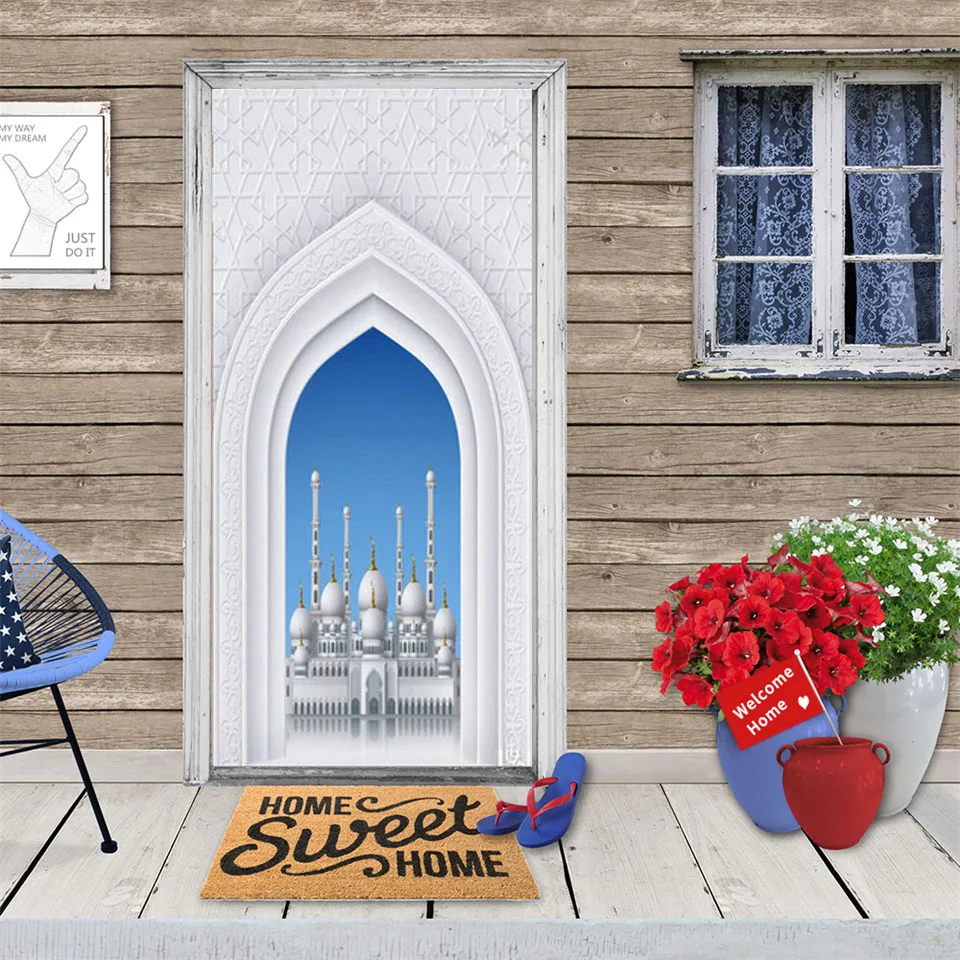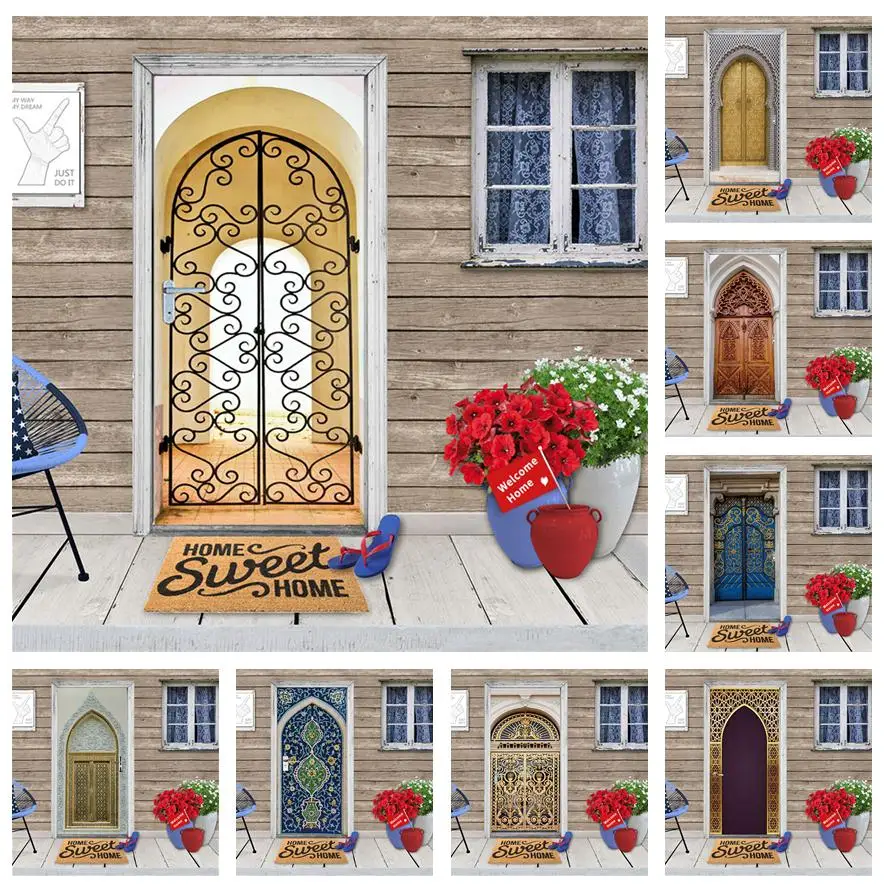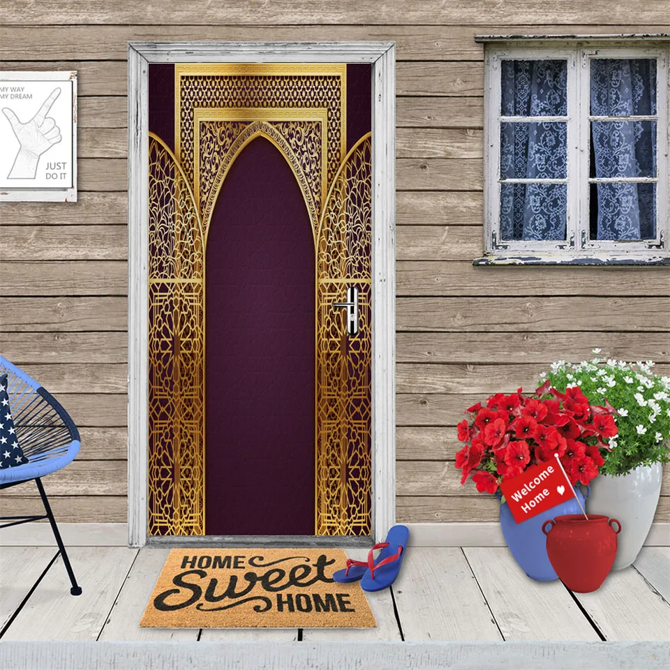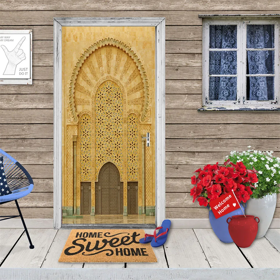 Мусульманская наклейка на дверь в стиле ретро, 3D обои, Самоклеящиеся украшения для гостиной и спальни, настенные наклейки, Индивидуальный размер, украшение для дома