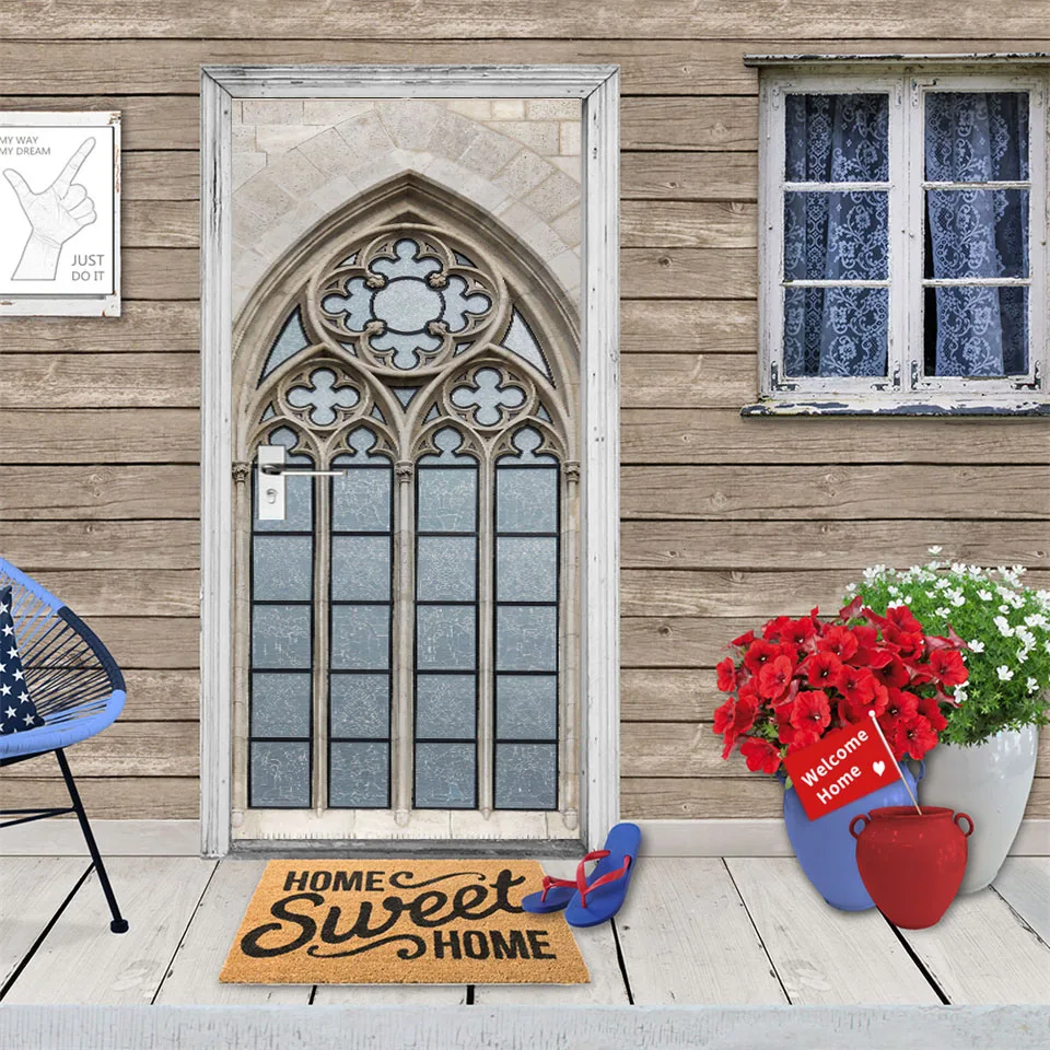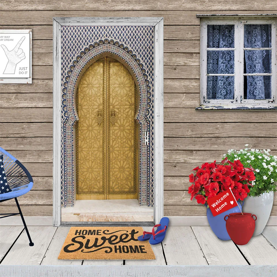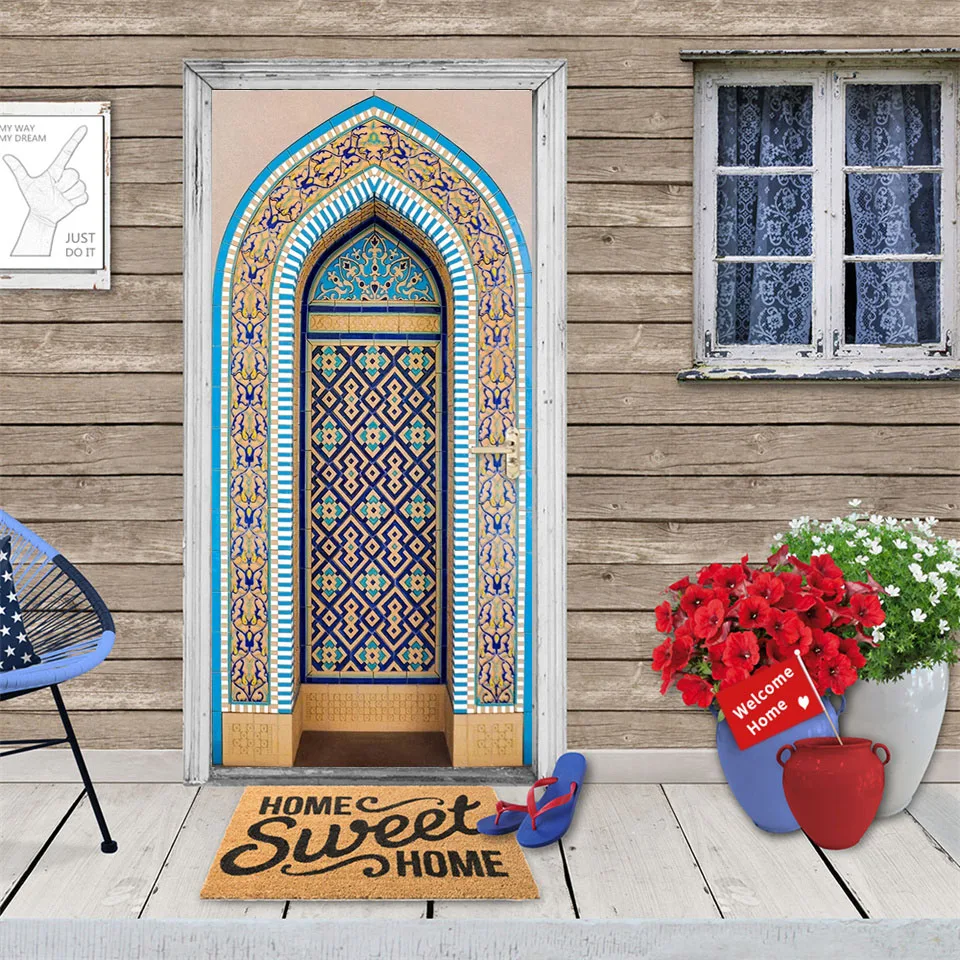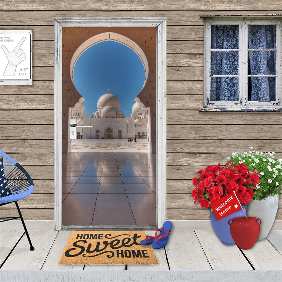 Мусульманская наклейка на дверь в стиле ретро, 3D обои, Самоклеящиеся украшения для гостиной и спальни, настенные наклейки, Индивидуальный размер, украшение для дома
