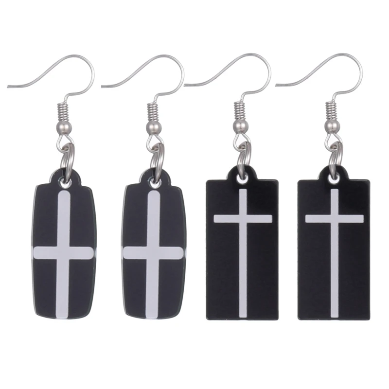 Серьги-подвески с черным крестом из акриловой смолы для косплея