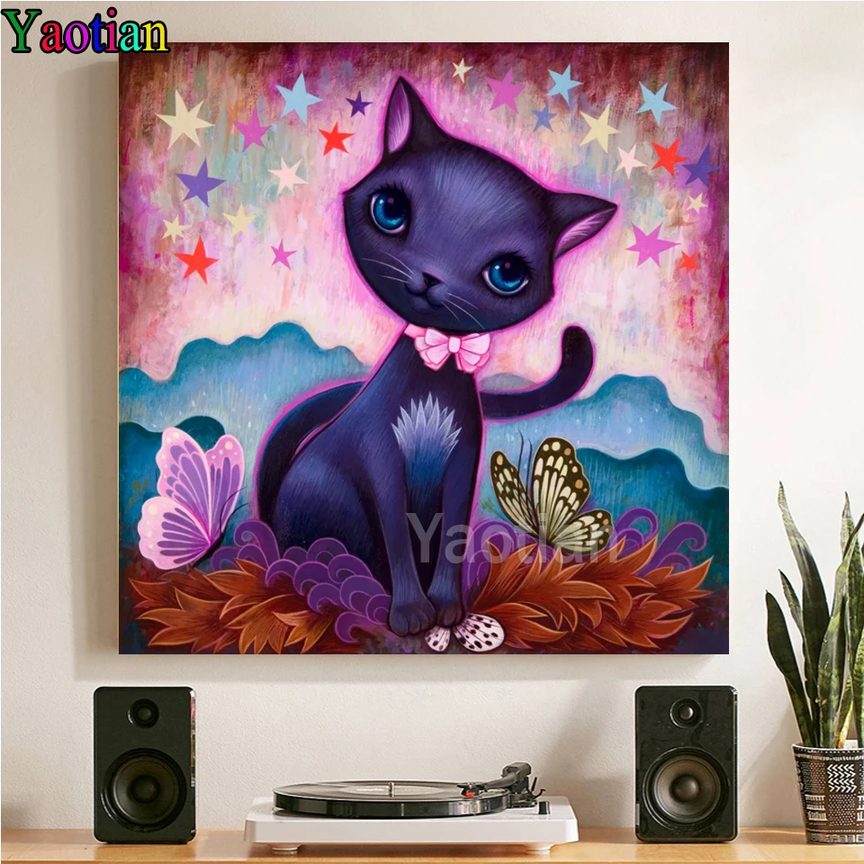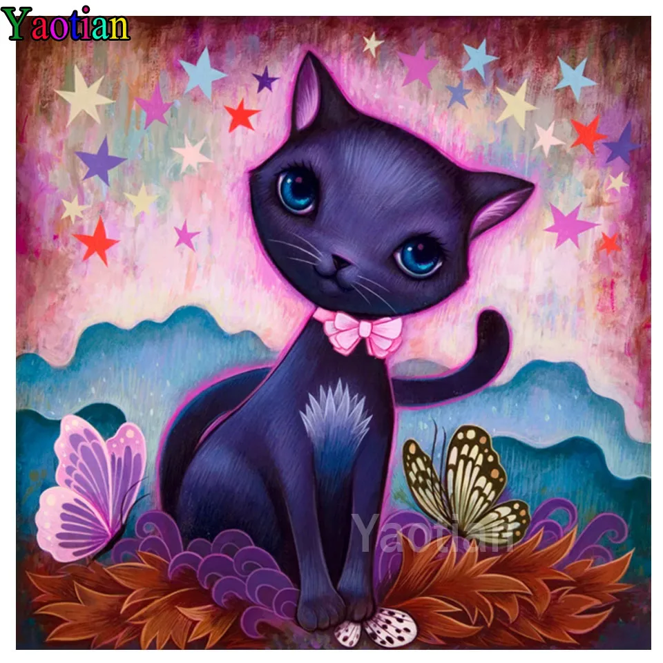 5D Diy Алмазная картина наборы мультяшный Кот полный квадратный Круглый Алмаз вышивка бабочка цветок мозаика ручной работы Детский подарок