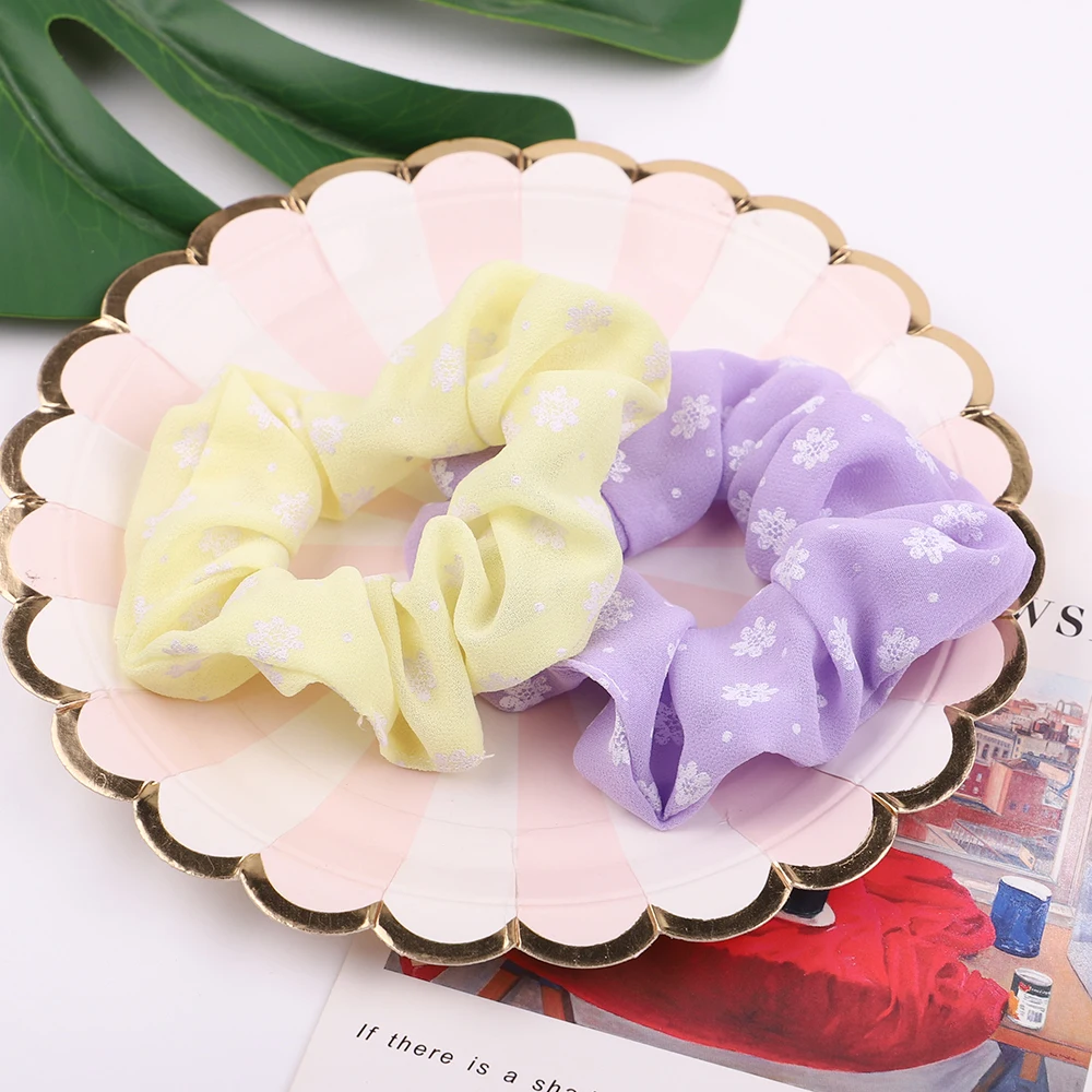 Шифоновые резинки для волос с цветочным принтом для женщин и девочек, эластичная резинка, тонкие веревочки для волос, аксессуары для волос
