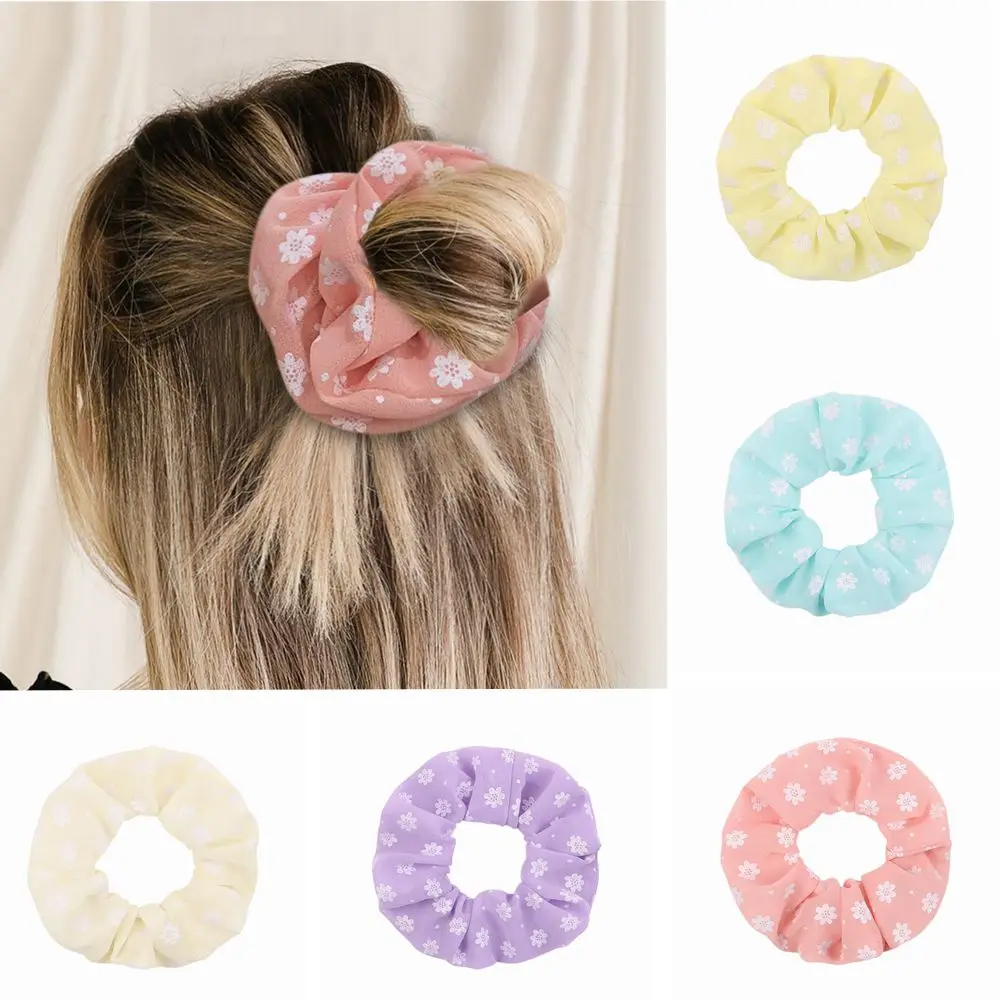 Шифоновые резинки для волос с цветочным принтом для женщин и девушек, эластичная резинка для волос с большим кишечником, головные уборы, аксессуары для волос