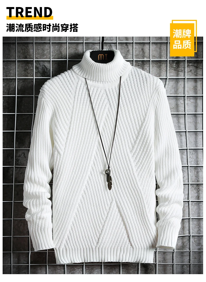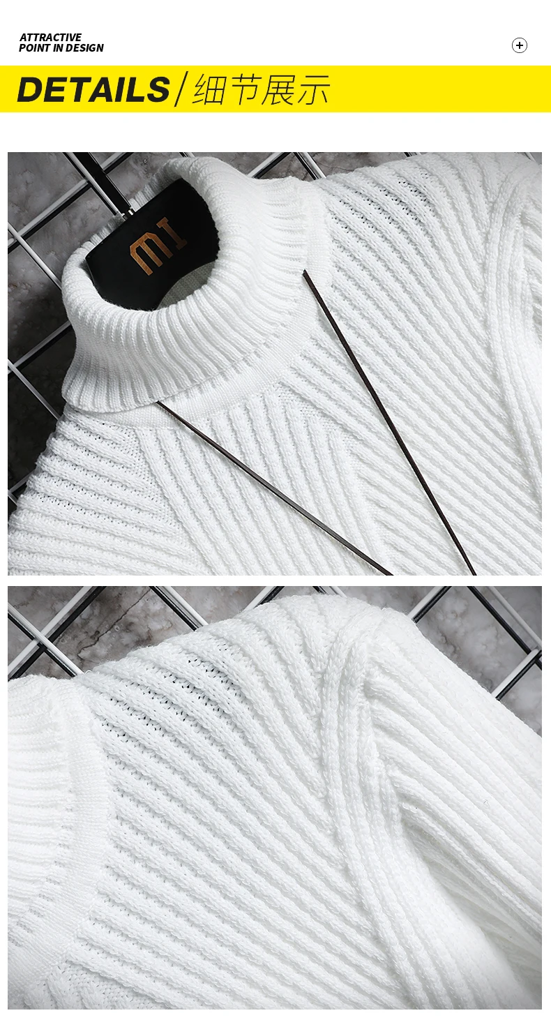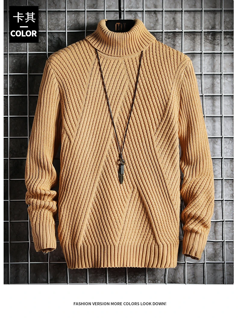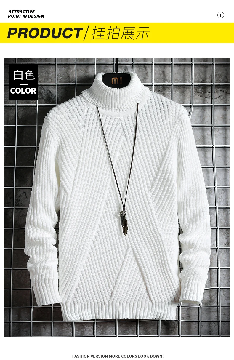 Мужской однотонный пуловер, с высоким воротом, с длинным рукавом, в полоску, в Корейском стиле, зимний, 2021
