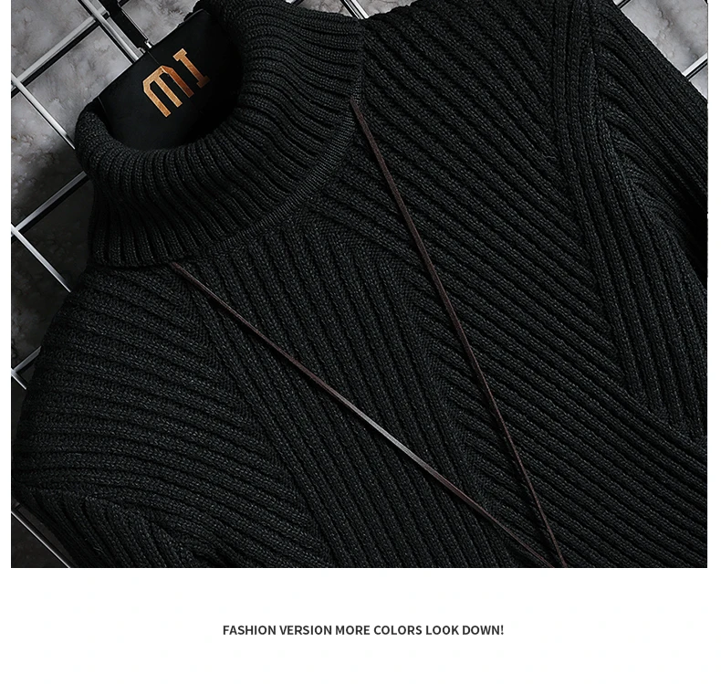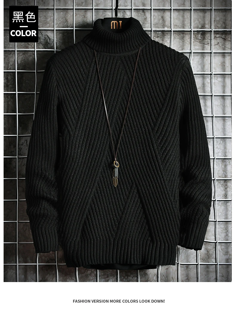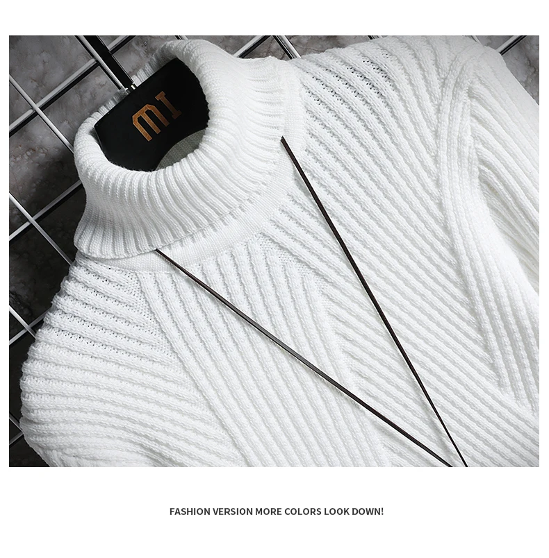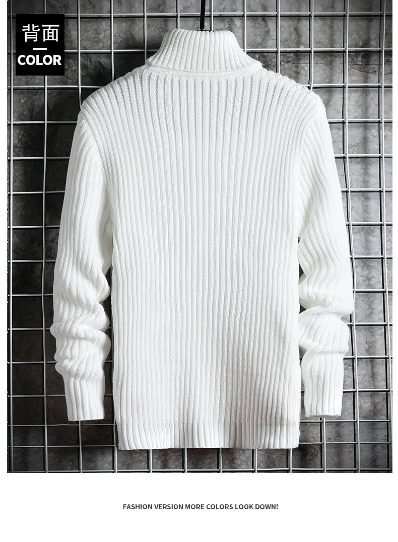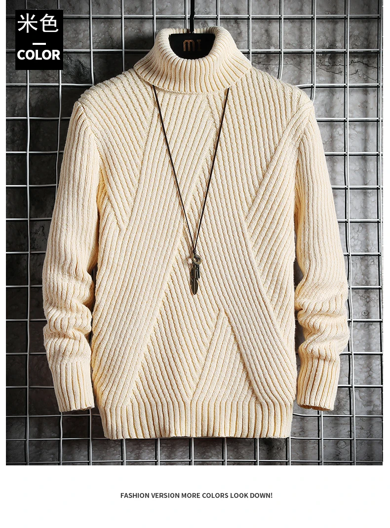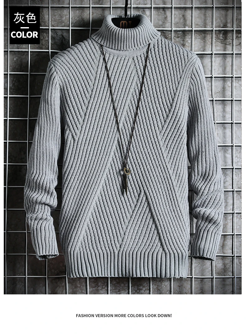 Мужской однотонный пуловер, с высоким воротом, с длинным рукавом, в полоску, в Корейском стиле, зимний, 2021