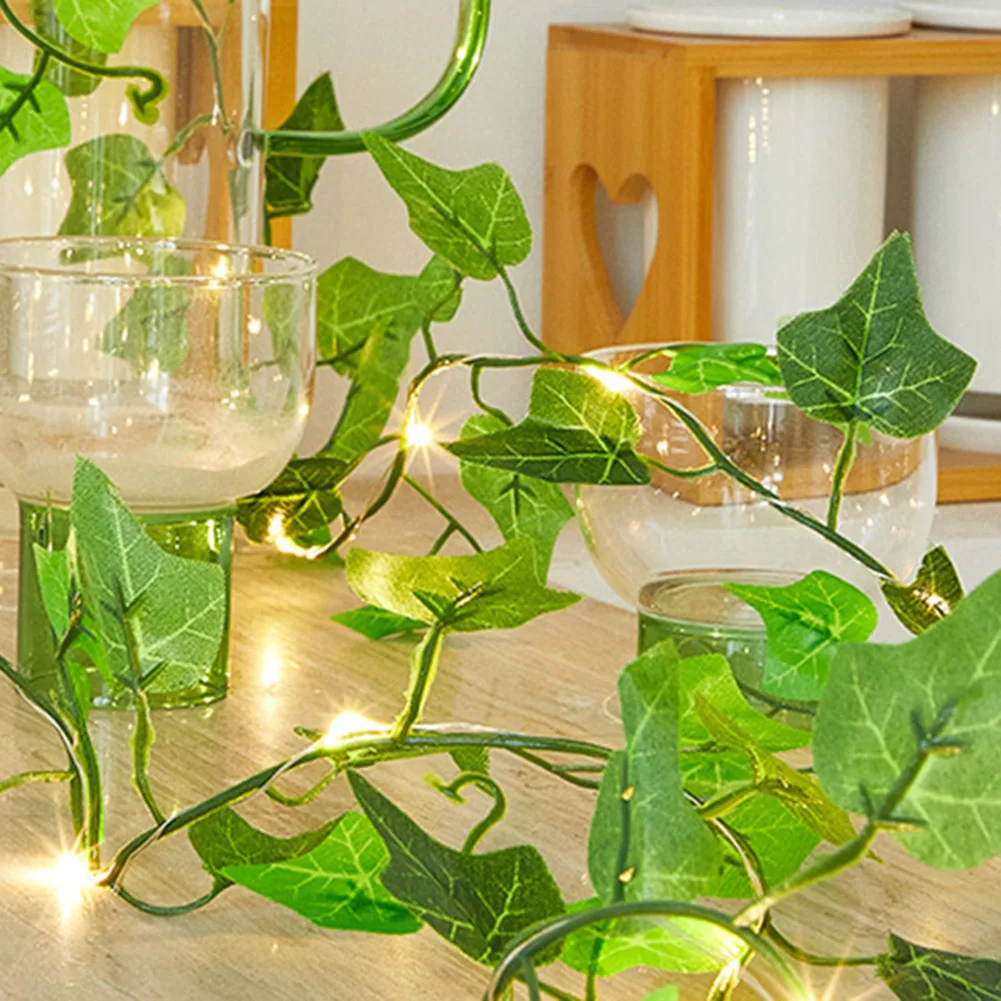 Гирлянда из зеленых листьев, гибкая светодиодная медная искусственн...