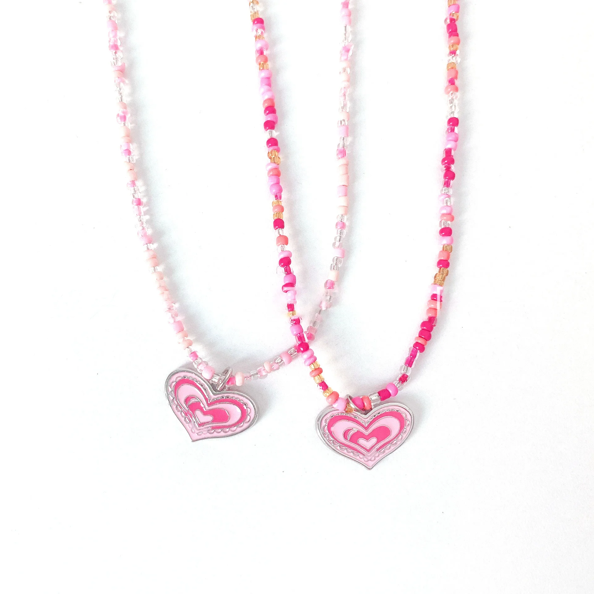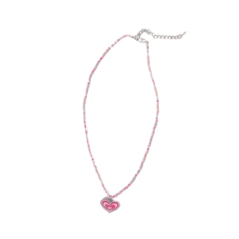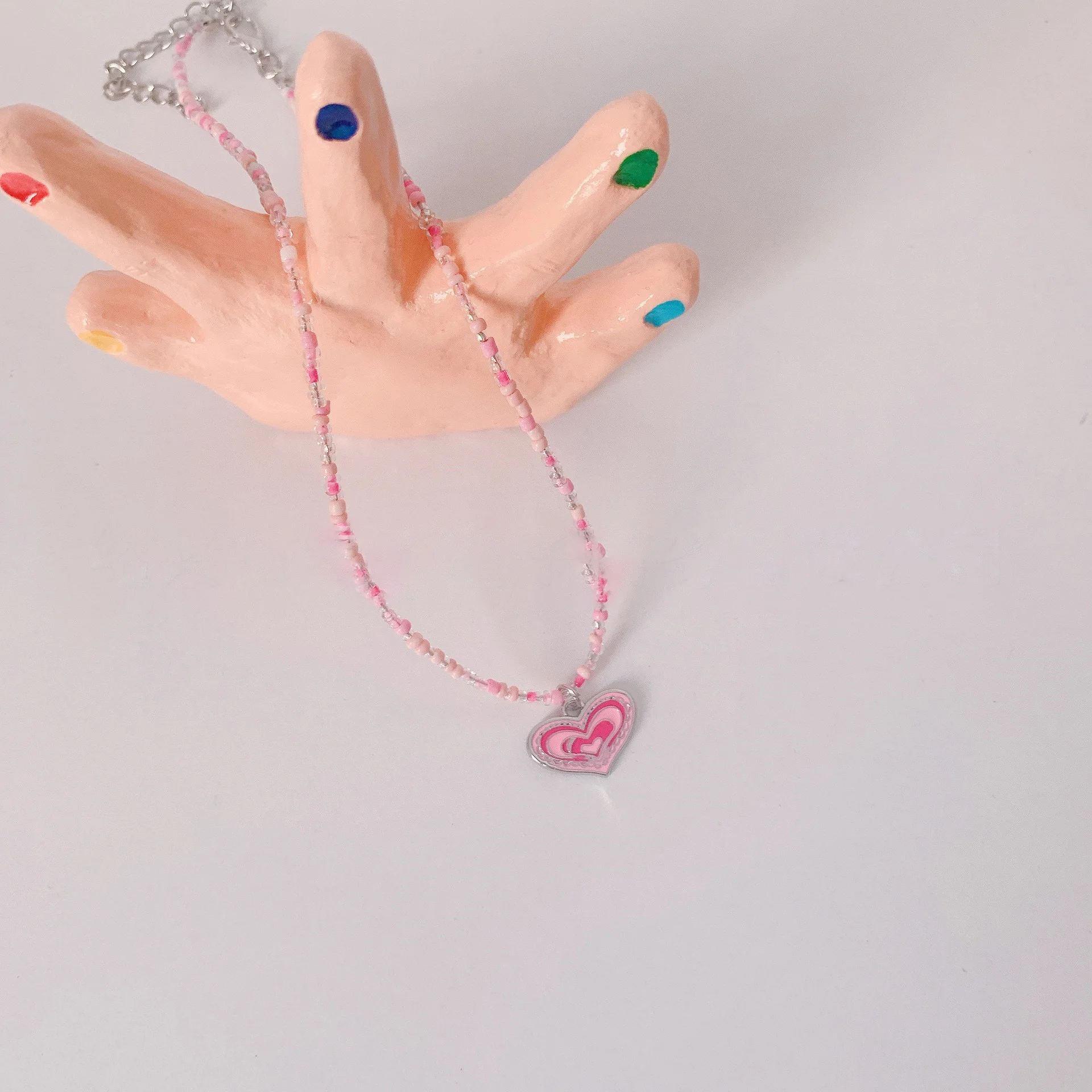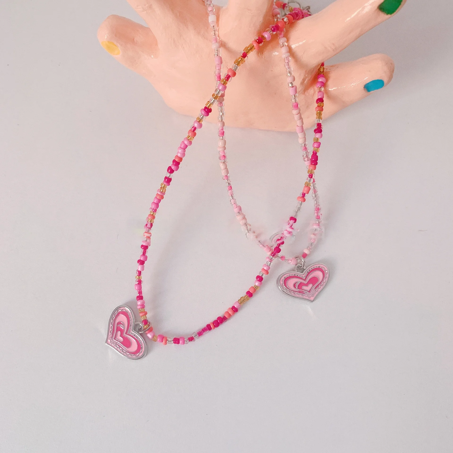 Женское ожерелье с подвеской в форме сердца, с розовыми бусинами