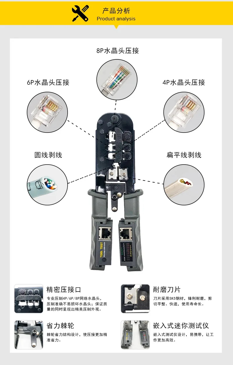 Многофункциональный обжимной инструмент RJ45 8P6P4P, трехцелевой те...