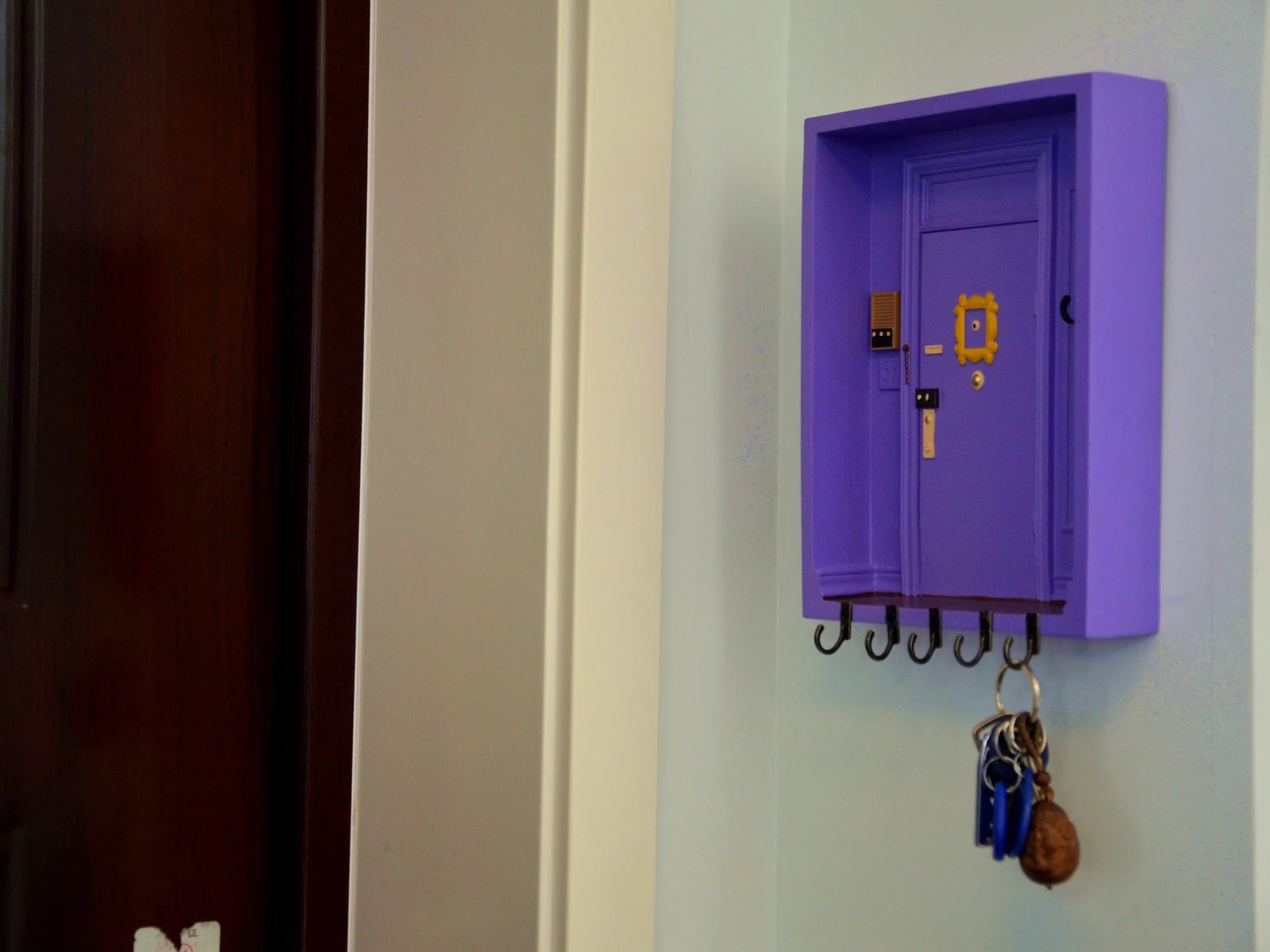 Держатель для ключей для ТВ-шоу, друзья, дверь Моники, фиолетовая дверная вешалка, украшения для друзей, знак приветствия, дверная тарелка, домашний декор, Настенный декор