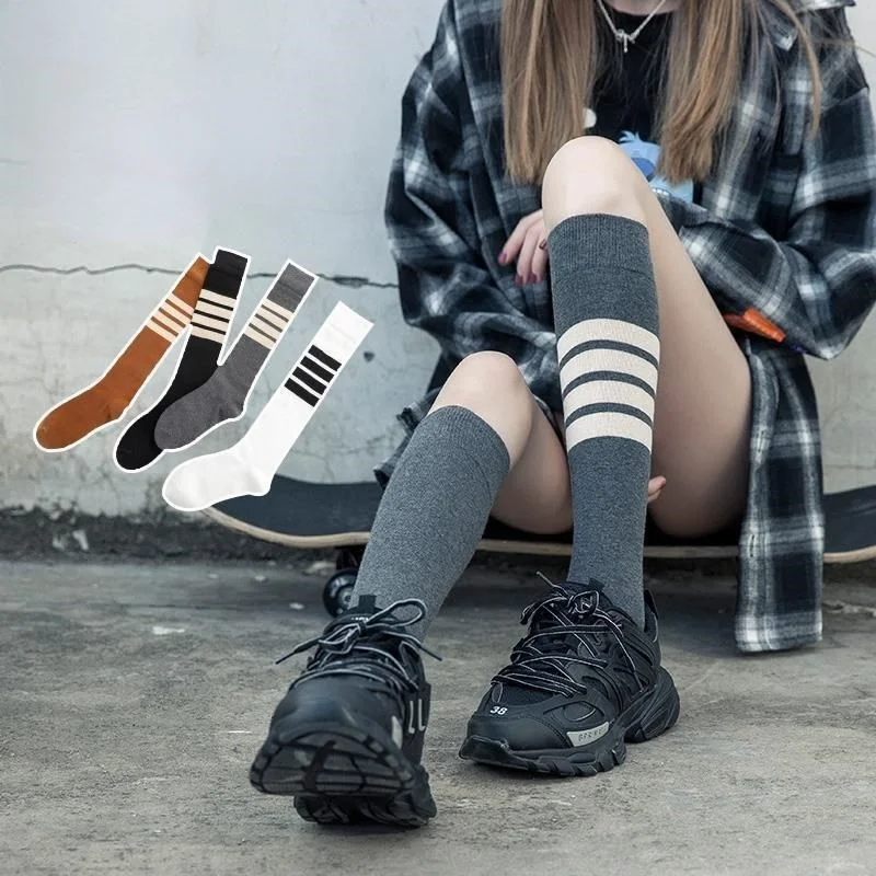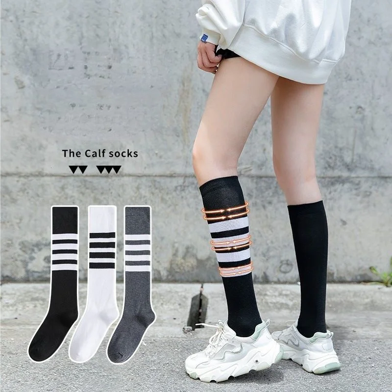 Асимметричные полосатые гольфы, корейские женские летние тонкие гольфы до середины икры, уличные спортивные чулки для японских студентов, новинка 2021