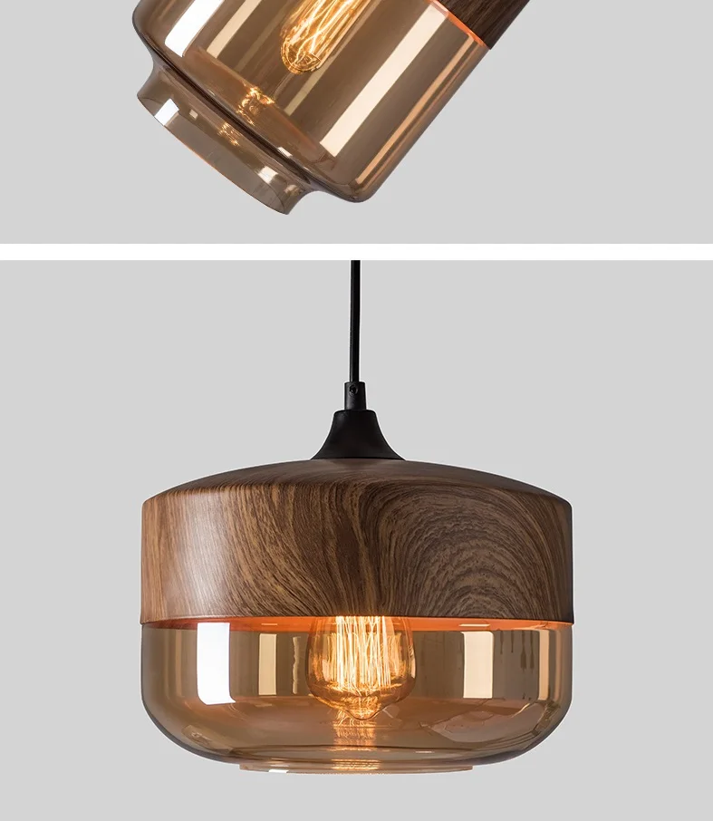 Светодиодные подвесные светильники IWHD в скандинавском стиле, современный деревянный абажур из стекла для спальни, гостиной, бара, кафе