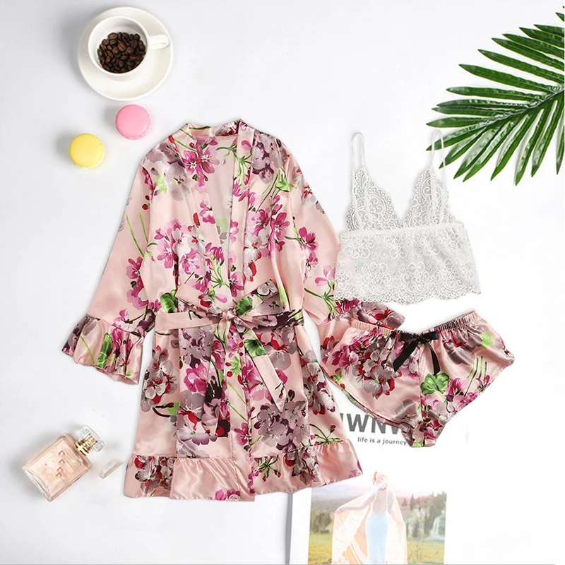 Сексуальное кружевное нижнее белье, ночное белье, нижнее белье, одежда для сна, 3 шт., костюм, пижамные комплекты для женщин, новинка, быстрая доставка, женские пижамы с длинным рукавом