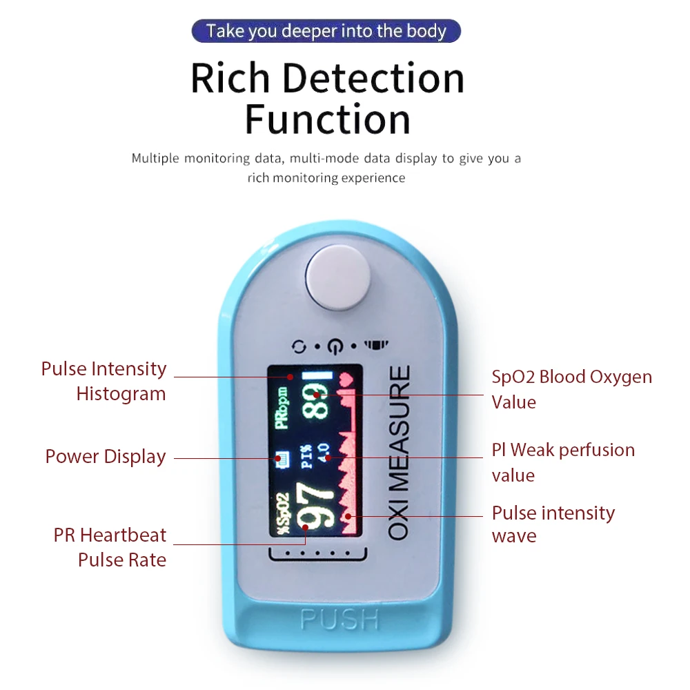 Особенности:1. Этот оксиметр имеет показания экрана в двух направлениях, легко понять и самоизмерять с помощью одной кнопки.2. Этот оксиметр принимает силикагель палец плесень, которая является мягкой и удобной, и не будет иметь никаких неудобных ощущений в процессе измерения.3. Этот оксиметр имеет функцию автоматического отключения, которая автоматически отключится, когда палец покинет инструмент в течение 8 секунд.4. Этот оксиметр принимает светодиодный четырехцветный экран, который является компактным и легким, удобно носить с собой и может быть измерен в любое время и в любом месте.5. Этот оксиметр очень прост в использовании, его можно открыть с помощью кнопки, и результат измерения может быть получен за 8 секунд.Технические характеристики:Материал: АБС-пластикЦвет: белыйЭлектропитание: сухая ячейка (не включает)Номинальное напряжение: 1,5 вРазмер упаковки: 7,6*5,2*3,7 см/2,99*2,04 * 1.45inВес упаковки: 36g/1,26 ozПримечание:Пожалуйста, внимательно прочитайте руководство продукта перед использованием.В комплект входит:1 * пульса и уровня кислорода в крови1 * веревка1 * Руководство пользователя