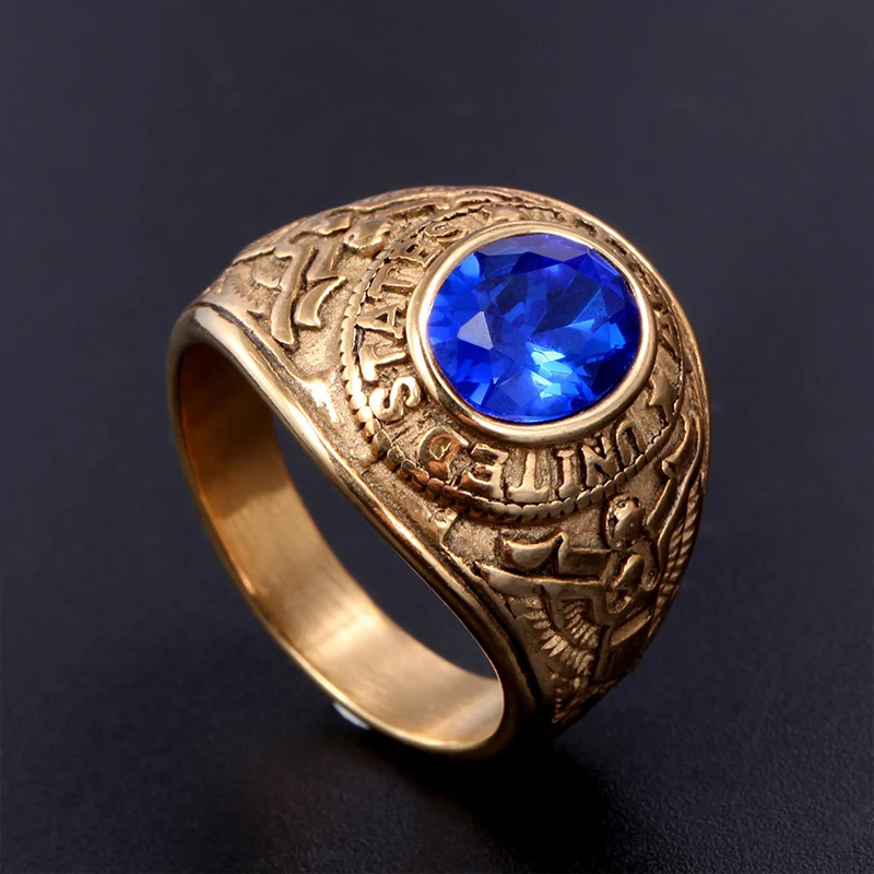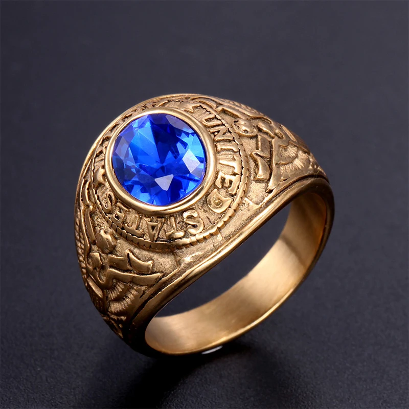 Мужское кольцо из нержавеющей стали с бриллиантами в стиле ретро