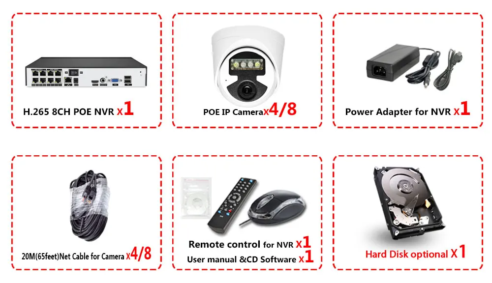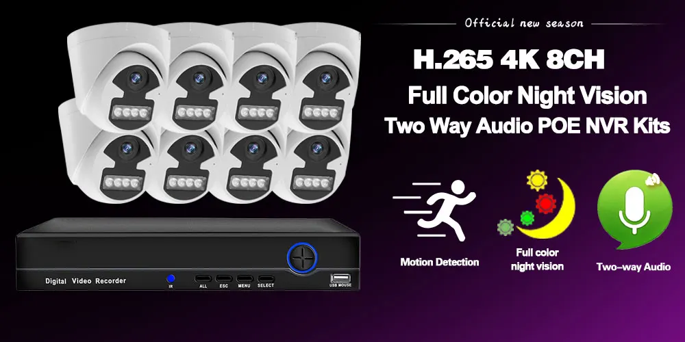 1. Все наши NVR и камеры являются реальными H.265 4K 8MP, NVR может поддерживать 8MP и 4K max, вы можете подключить 720p,1080p,3mp,4mp ,5mp, камеры 8mp & 4k с нашим POE NVR;2. Наш NVR поддерживает распознавание лиц, умное воспроизведение лица, обеспечивает ультра высокое разрешение видео наблюдения, обеспечивая максимальную детализацию и четкость в наличии;3. Наш NVR и камеры поддерживают расширенное H.265 Сжатие видео, питание через Ethernet, подключи и работай, простота установки;4. Все камеры встроены в микрофон и динамик, поддержка двухсторонней аудиозаписи;5. Все камеры подходят для внутренней и наружной, надежной домашней безопасности;6. Все камеры поддерживают Ultra HD Full Color Day Night Vision;7. Поддержка обнаружения движения, оповещения по электронной почте, воспроизведение видео, протокол onvif и многоязычный;8. Поддержка Android,Iphone,Ipad,PC,VMS,P2P view;9. Удаленный доступ в любом месте, в любое время;