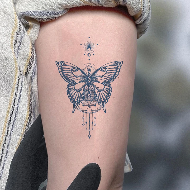 Полуперманентные татуировки премиум-класса для мужчин и женщин, темно-синяя бабочка, временная татуировка, Реалистичная водонепроницаемая и долговечная, 1-2 недели