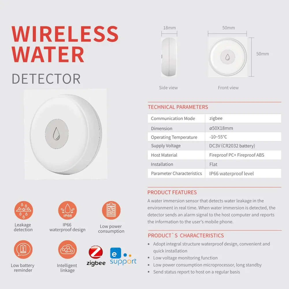 Датчик утечки воды Zigbee, беспроводной детектор наводнения датчик ...