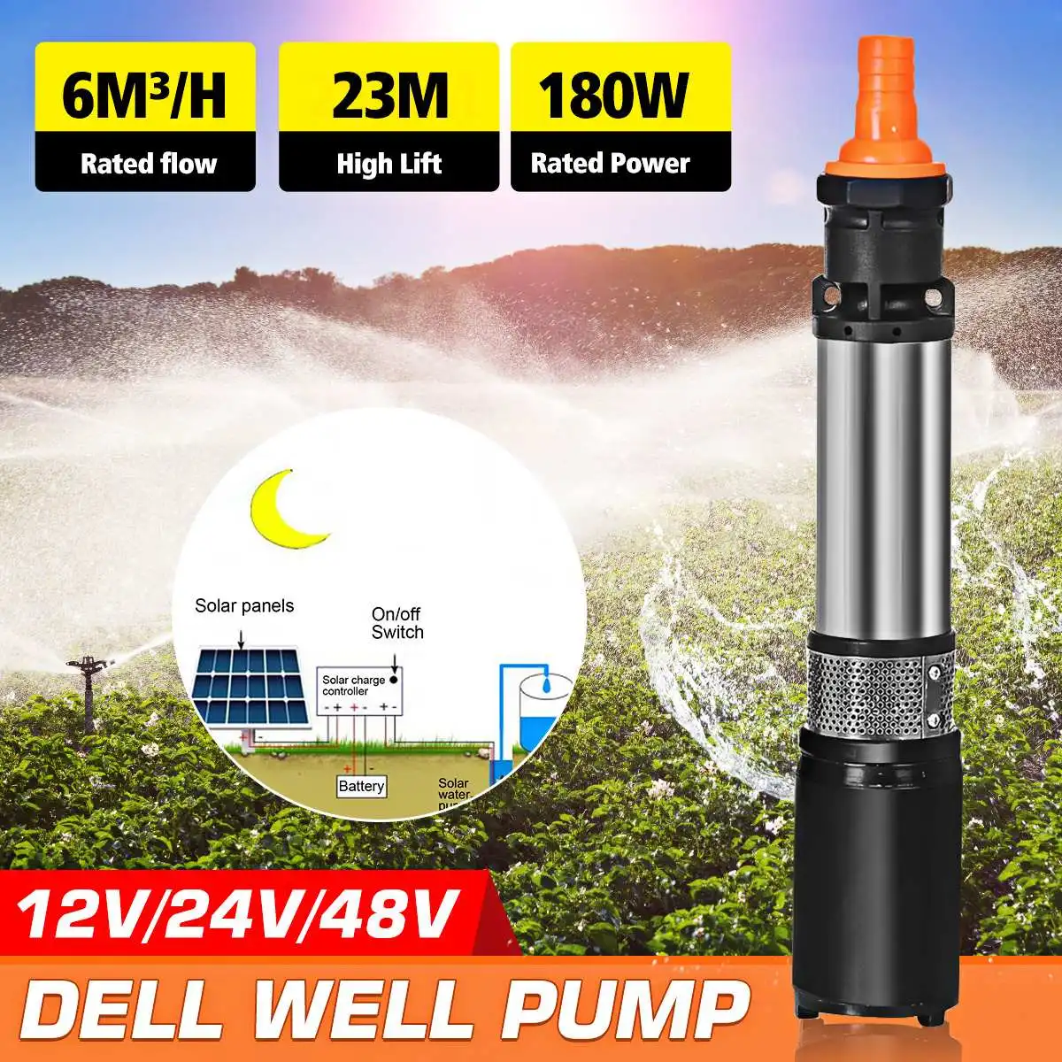Погружной глубоководный насос из нержавеющей стали, 180 Вт, 12 В, 24 В, 48 В, высокий подъем 23 м, Солнечный водяной насос для сада, домашнего сельскохозяйственного орошения