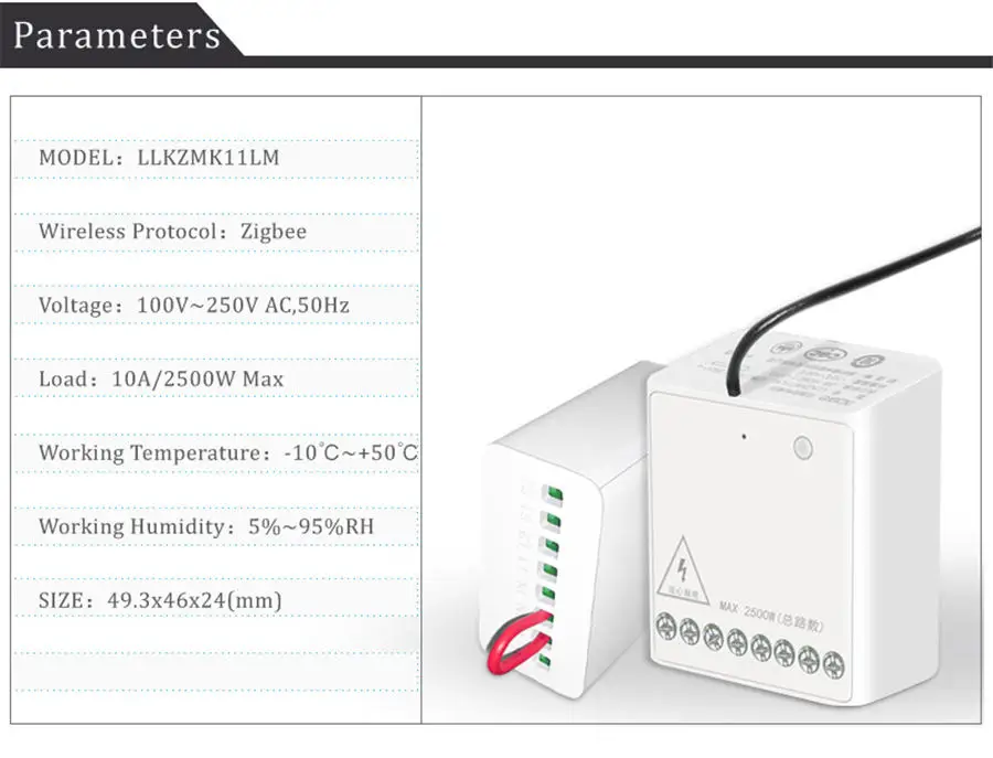 Примечание: Этот продукт должен использоваться с шлюзом, и там должна быть нейтральная линия.