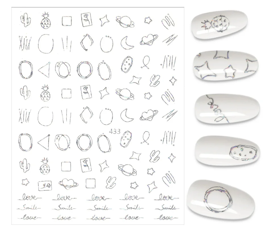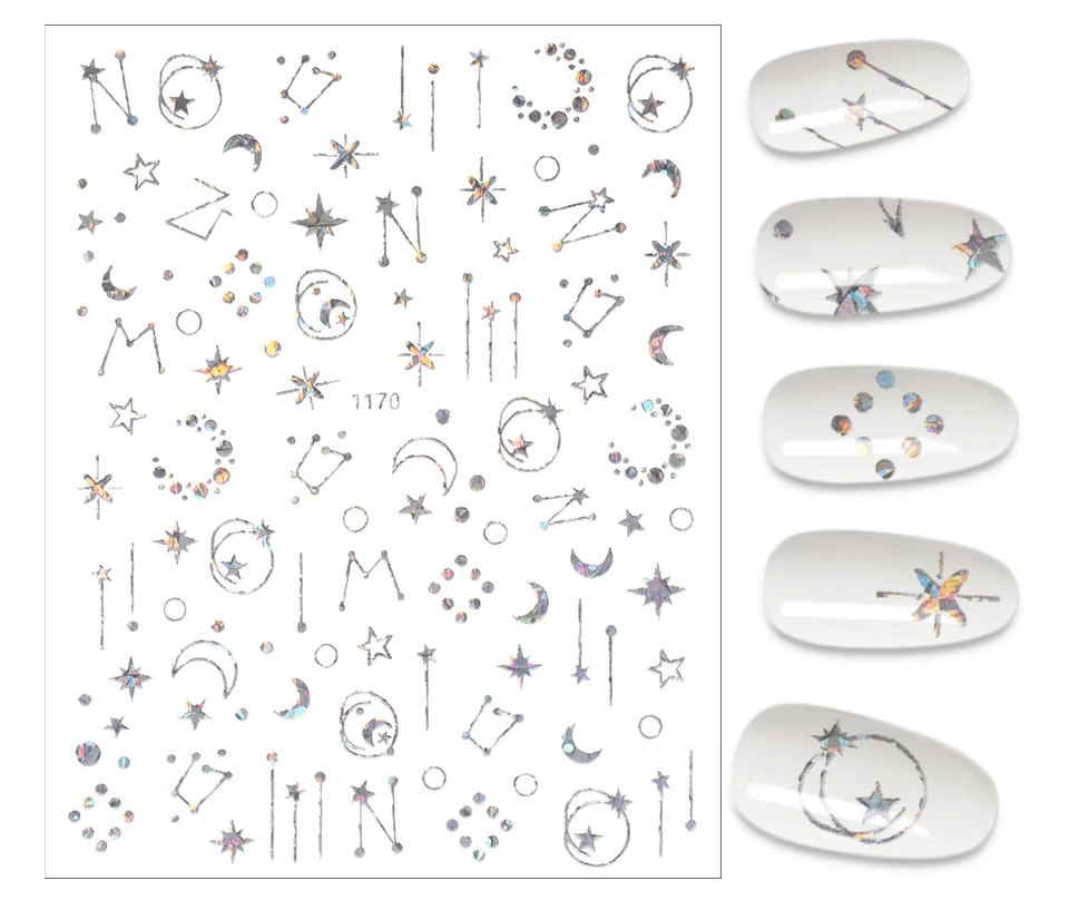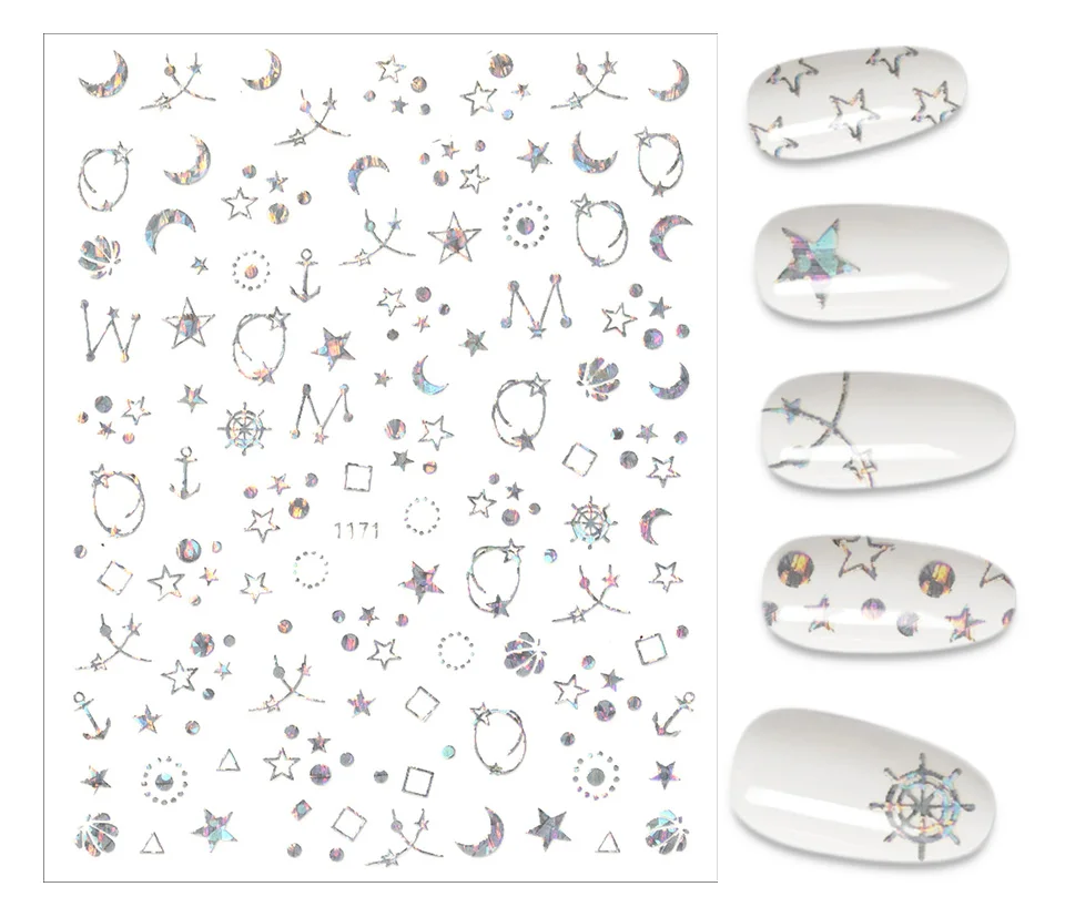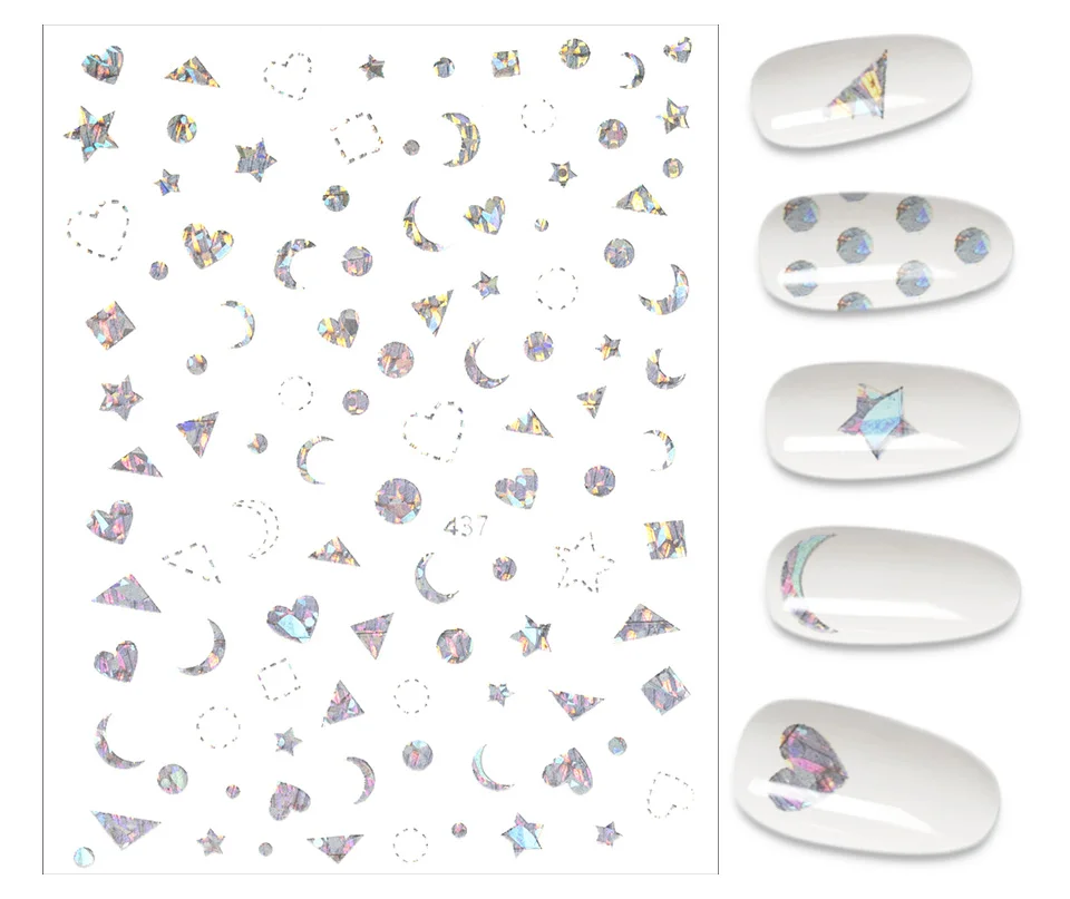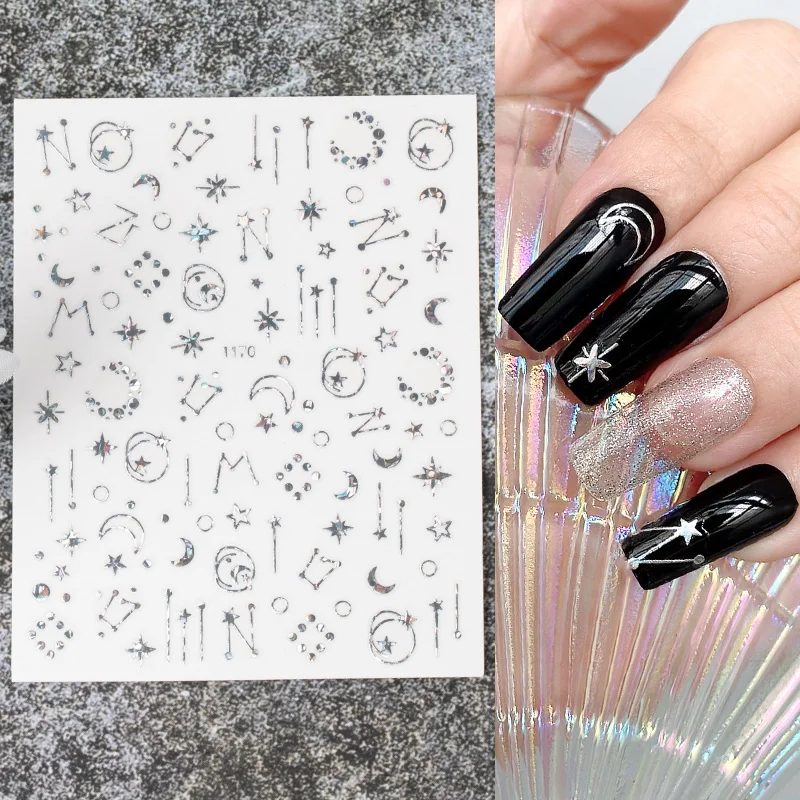 Золотистые и Серебристые наклейки для ногтей, Мультяшные геометрии, маникюр, лазер, луна, звезда, дизайн, украшения для ногтевого дизайна, смешанные серии наклеек для ногтей