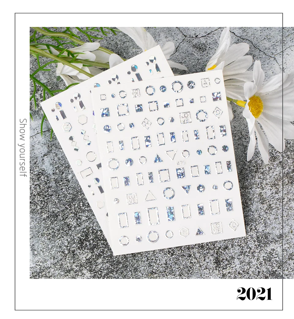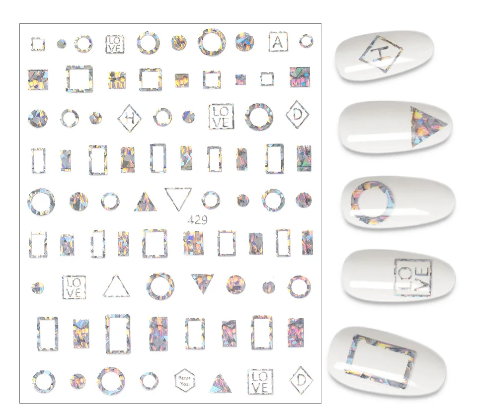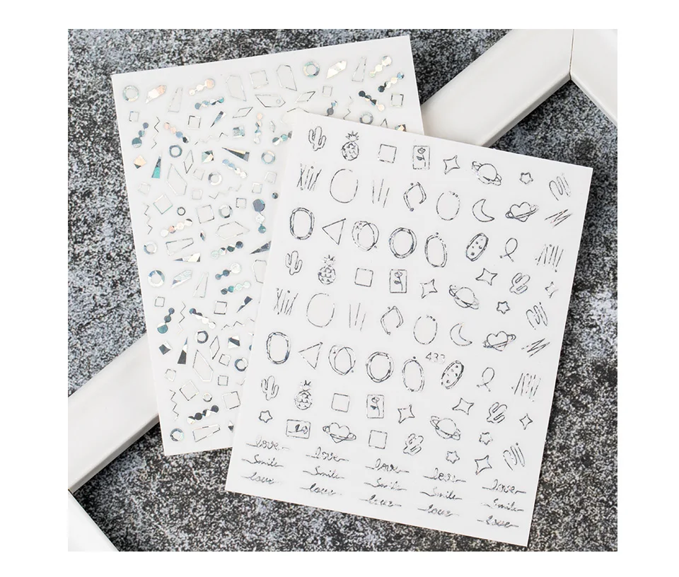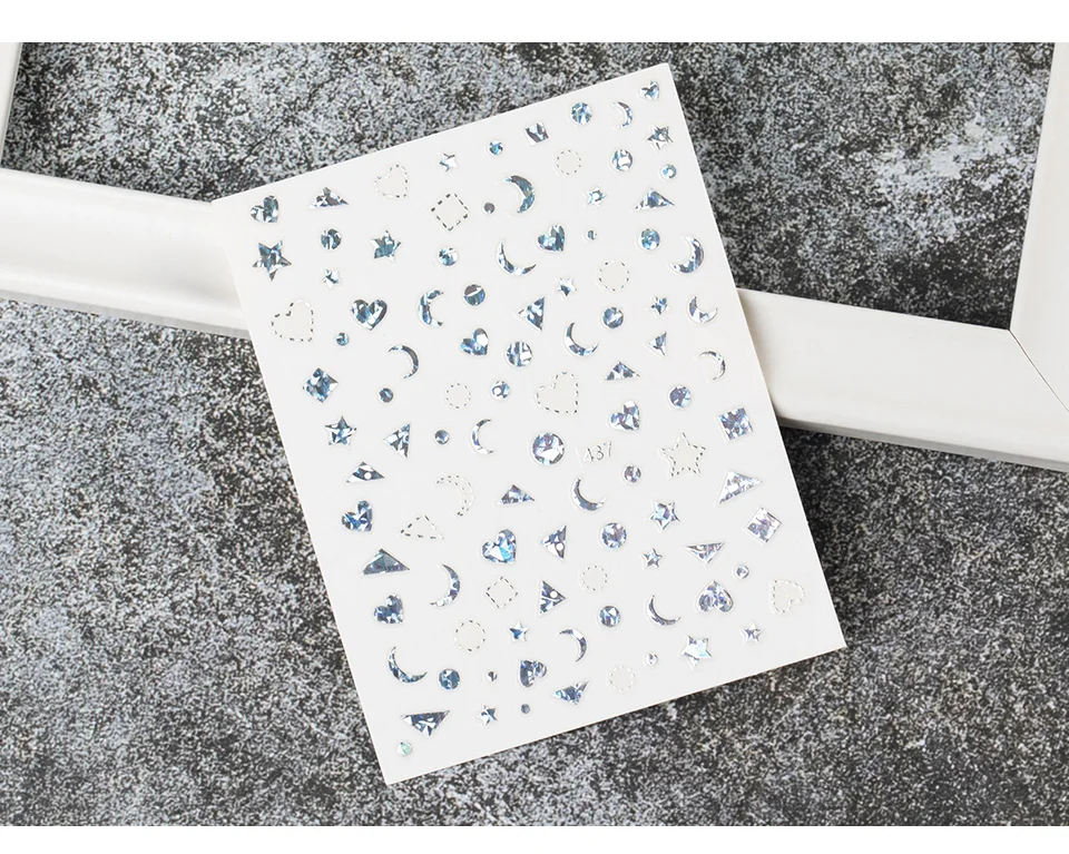 Золотистые и Серебристые наклейки для ногтей, Мультяшные геометрии, маникюр, лазер, луна, звезда, дизайн, украшения для ногтевого дизайна, смешанные серии наклеек для ногтей