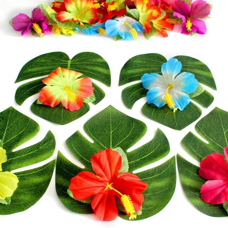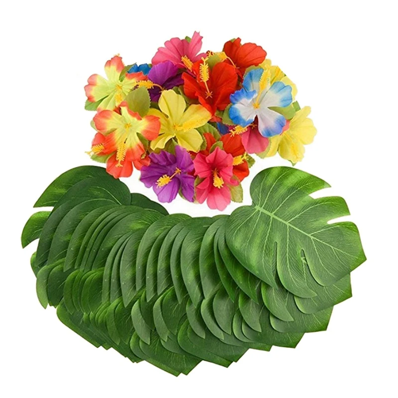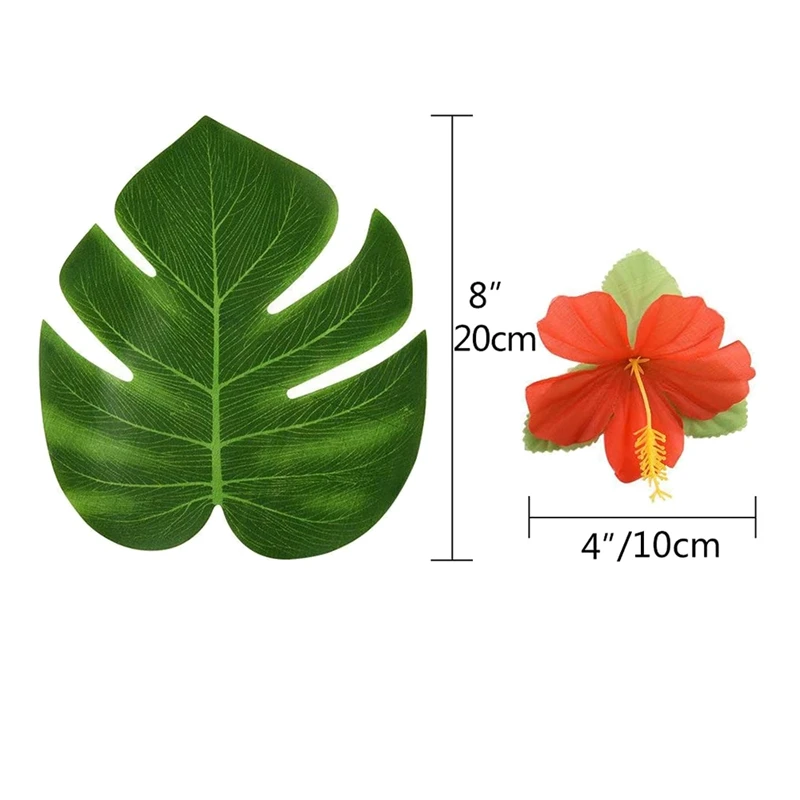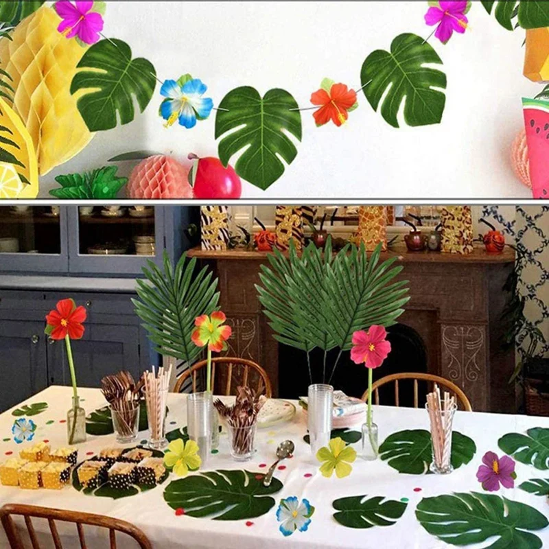 8 дюймов, тропические пальмовые листья и цветы, 96 шт., тропические украшения для вечерние в гавайском стиле, украшение для пляжного стола в джунглях