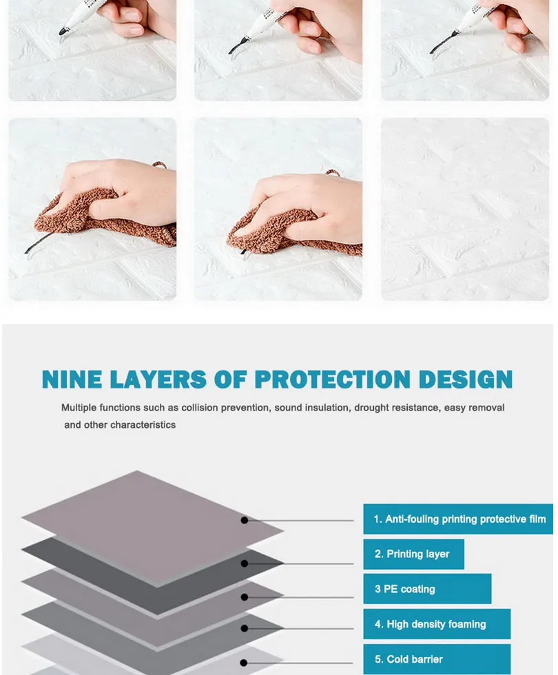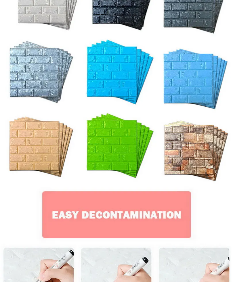 Особенности:<Премиум качество:Изготовлен из высококачественного материала, предотвращающего столкновения детей, позаботьтесь о своей семье. Водонепроницаемость, защита от влаги и звукоизоляция. Легкая чистка и обслуживание, нетоксичный, без запаха.<Самоклеящаяся конструкция:Самоклеющиеся пилки и наклеиваемые обои, легко наклеиваются и снимаются.<Безопасно для вашей семьи:Материал 3D кирпичной пены обои является безопасным, нет обнаружения вредных тяжелых металлов, высокое качество окружающей среды стены Декор панелей.<Применение:Идеально подходит для стен, ТВ-стен, диванов, гостиной, спальни, кухни, детской комнаты, лестниц, столовой и так далее.<Идеальный декор:3D эффект и текстура, текстура 3D обоев сделана из мягкого пеноматериала.<Различные цвета могут удовлетворить различные потребности.<Простая установка:1. Тщательно очистите поверхность.2. Снимите клеевую пленку и приклейте обои к поверхности.3. Мягко гладьте обои, чтобы обеспечить их безопасность4. Разгладьте любые воздушные пузыри, когда вы двигаетесь вниз.