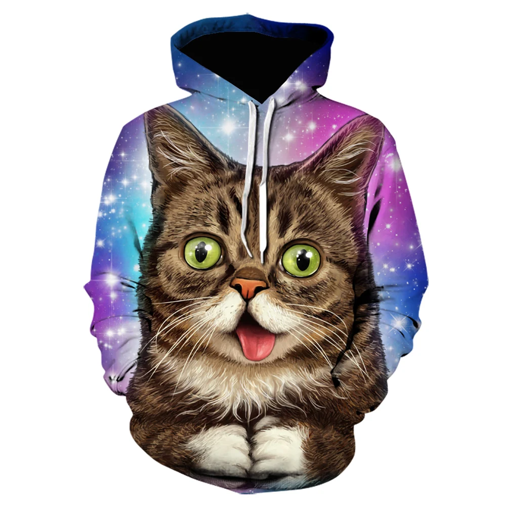 Новинка, Осенний свитшот с котом, модный Свободный пуловер с 3D при...