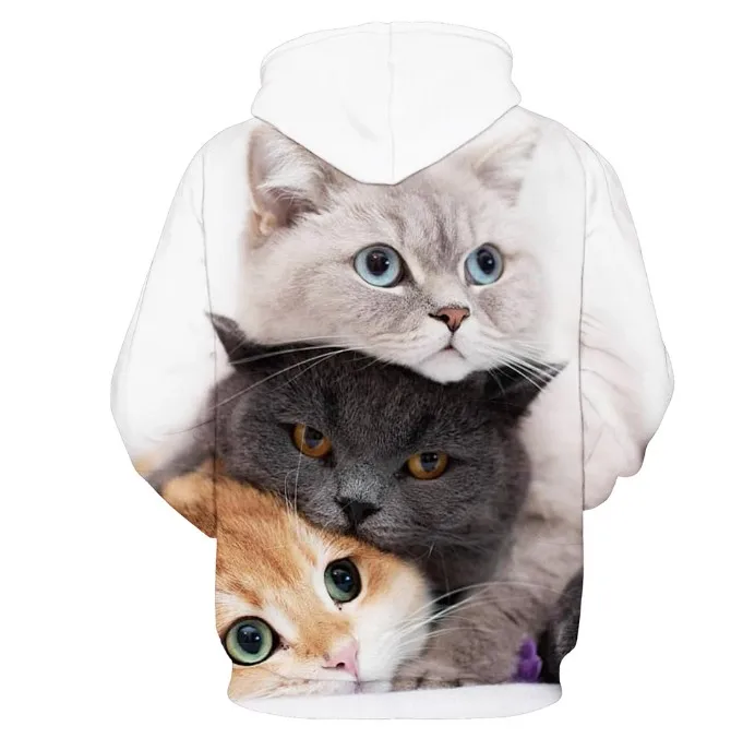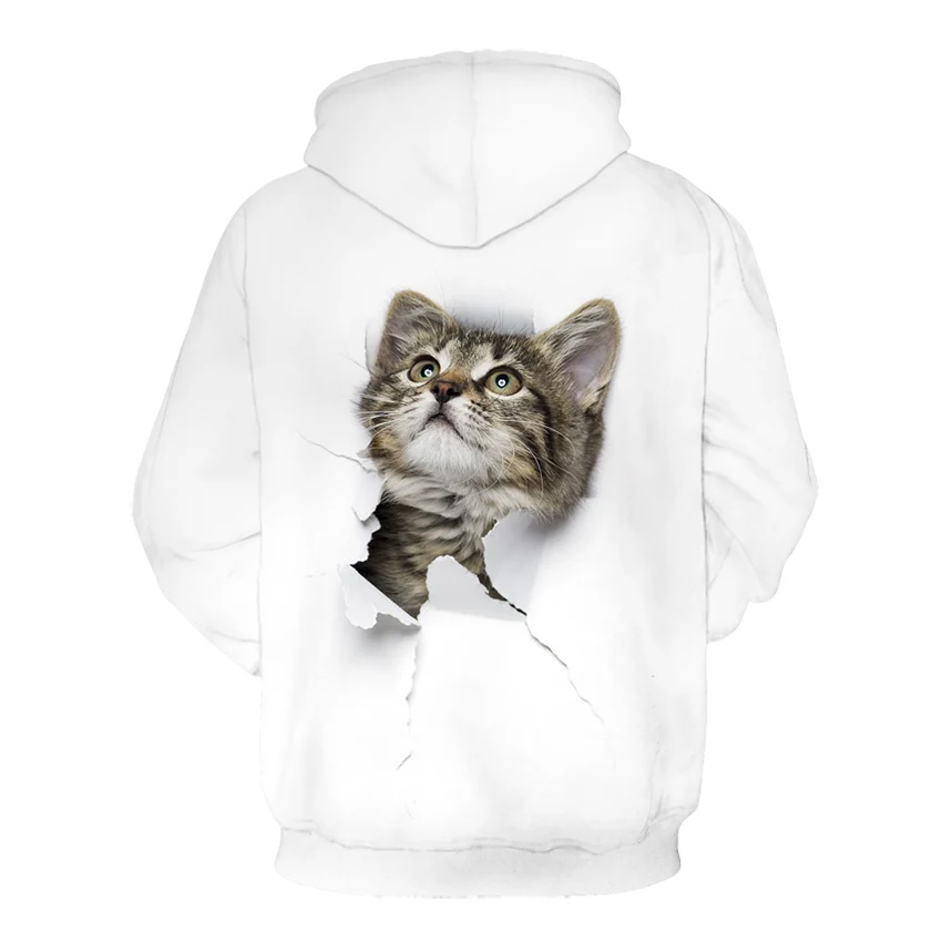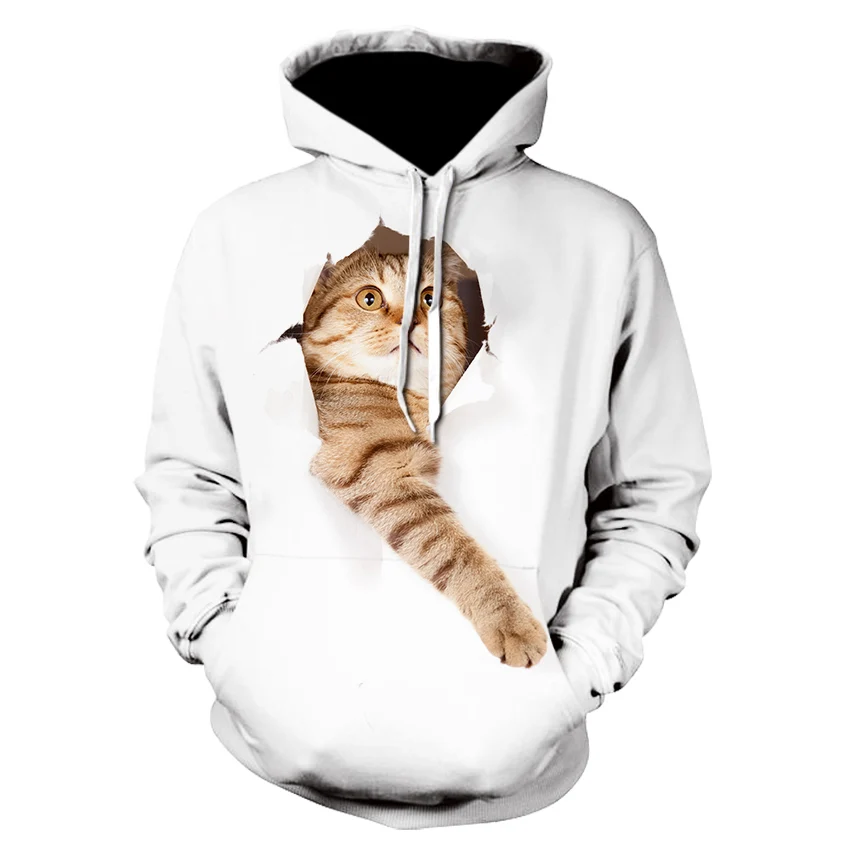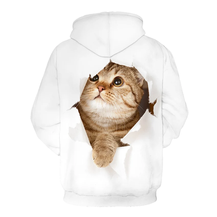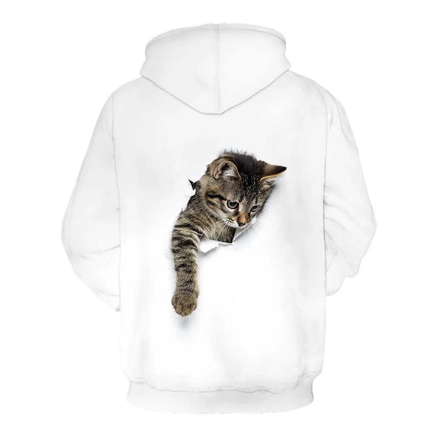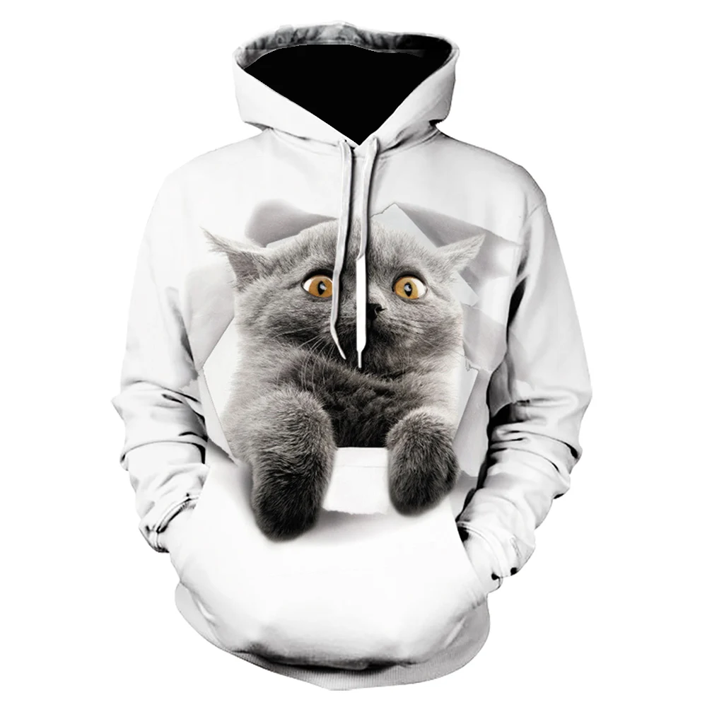 Новое поступление 2021, симпатичная толстовка с 3D принтом кота, мужские и женские свитшоты в стиле Харадзюку, зимние белые толстовки с изображением животных, пуловеры оверсайз