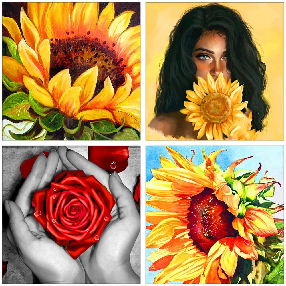 Круглый полный алмаз 5d цветок Алмазная картина Роза женщина Подсолнух DIY Алмазная вышивка набор украшение для дома украшения