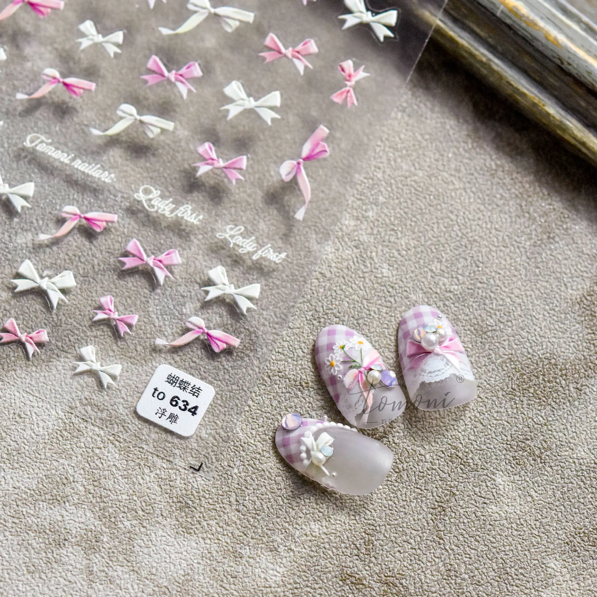 1 шт., 5D акриловые рельефные наклейки для ногтей с розовым бантом