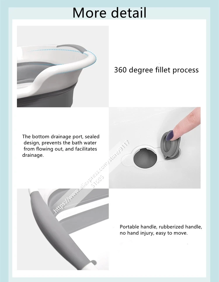 Портативная силиконовая складная детская ванна с отверстием для слива