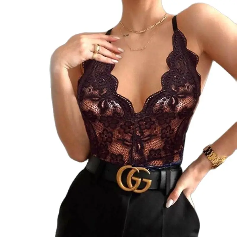 Комбинезон женский кружевной с глубоким V-образным вырезом, модное ...